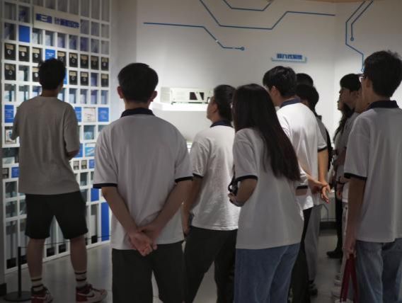 7月8日上午,实践团走进电子科技大学(简称成电),与成电计算机科学与工程学院研究生开展联合主题党日活动,并一同参观电子科技博物馆和相关实验室。在成电行政楼会议室,两校同学围绕“研究生党员先锋模范作用发挥”畅谈深刻感悟,就“党建与科研深度融合”话题展开热烈讨论。随后,在成电计科院硕博士的带领下,实践团参观了计算机科学与工程学院展厅及实验室,成电博士生方凯鹏、刑佑广为同学们演示了人形机器人及机械臂抓取物品的具身智能场景。在博物馆,讲解员引领实践团参观了通信设备、雷达部件、电子元器件、测量仪器、广播电视、计算机软硬件等大量珍贵藏品,重点介绍了成电本科毕设相关展品,以及参与过抗洪、地震救灾工作的激光通信设备和无人机藏品。沿着科技变革脉络,同学们领略了成电人勇于探索、敢于创新、艰苦奋斗的科学精神。