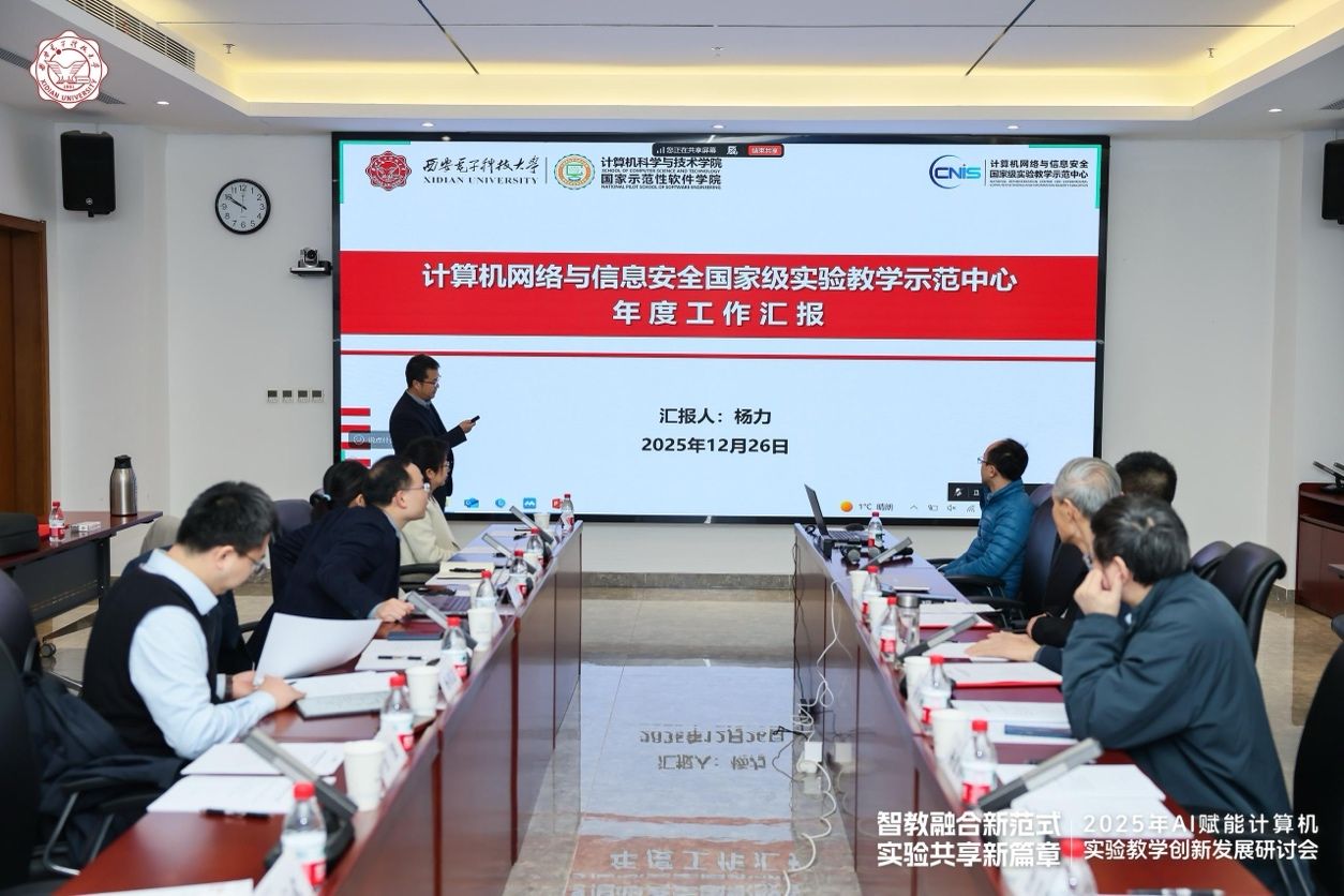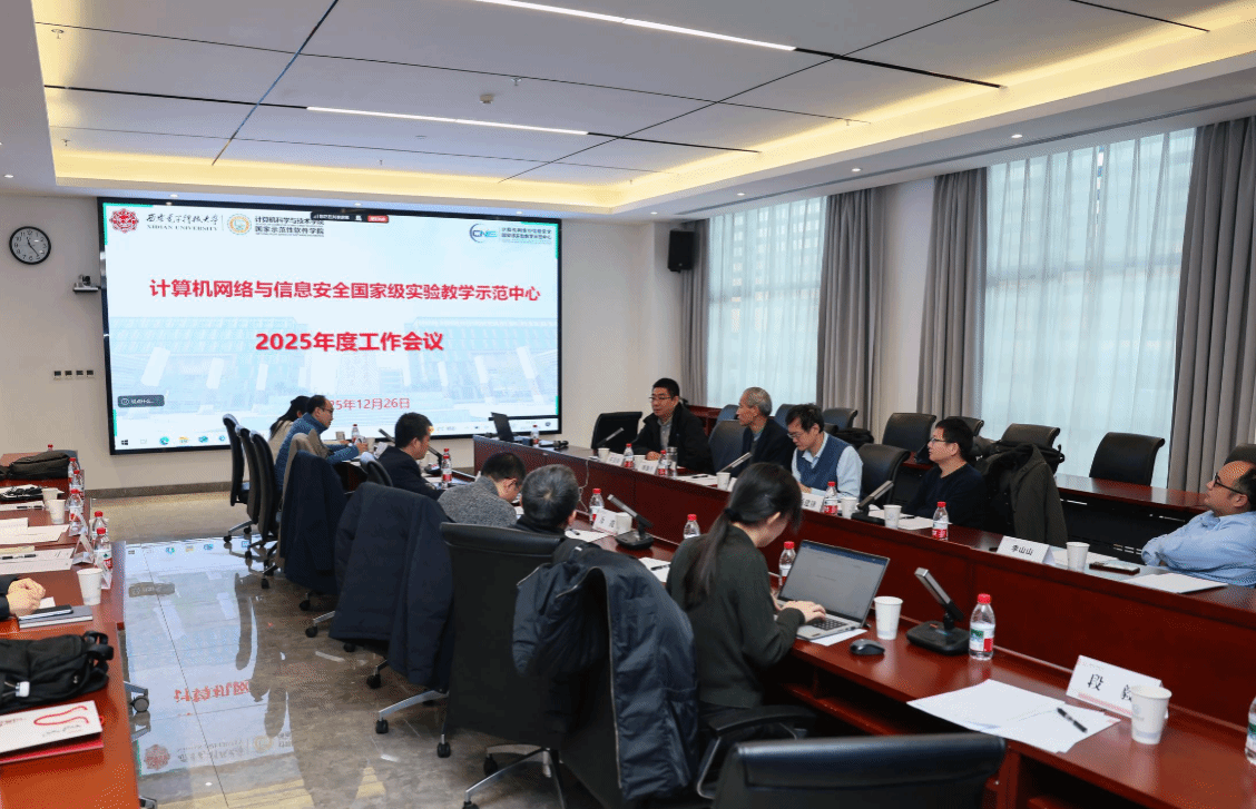 12月26日上午,“计算机网络与信息安全国家级实验教学示范中心2025年度工作会议”在南校区会议中心A121会议室举行。国家级教学名师、西安交通大学桂小林教授,国家级教学名师、陕西师范大学傅钢善教授,西北大学信息科学与技术学院副院长冯筠教授、实验中心主任杨建锋高级工程师,华为高校系统部鲁月华主任,西电教务处副处长兼教师教学发展中心办公室主任杨明磊,电子工程学院副院长任爱锋,yl7703永利集团副院长万波、本科教学办公室主任张亚菲及实验教学中心教师代表,共计20余人参加会议。会议由学院副院长兼国家级实验教学中心主任杨力主持。