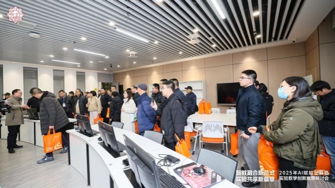 会议尾声,与会人员共同前往学校高算中心和学院实验教学中心参观交流。大家实地观摩前沿算力设备的运行应用,近距离体验 AI 赋能实验教学的实操场景,直观感受数字化、智能化技术在教育领域的落地成效,引发了与会者的深度共鸣与热烈探讨。