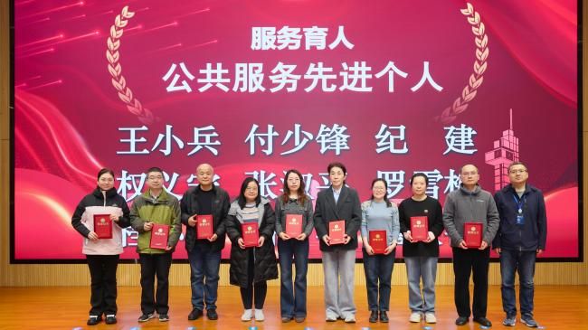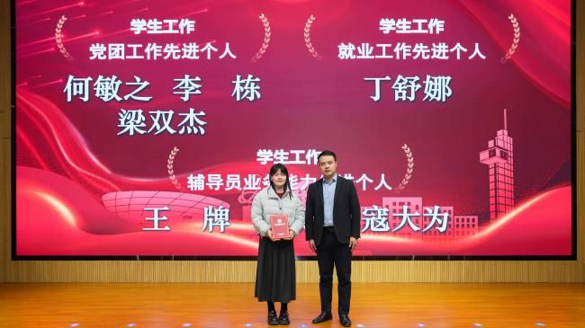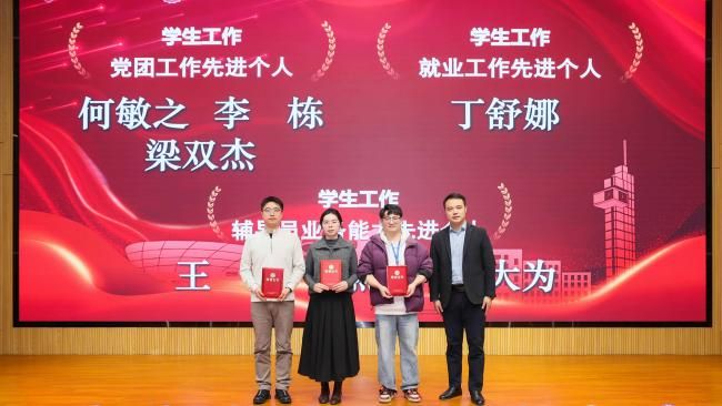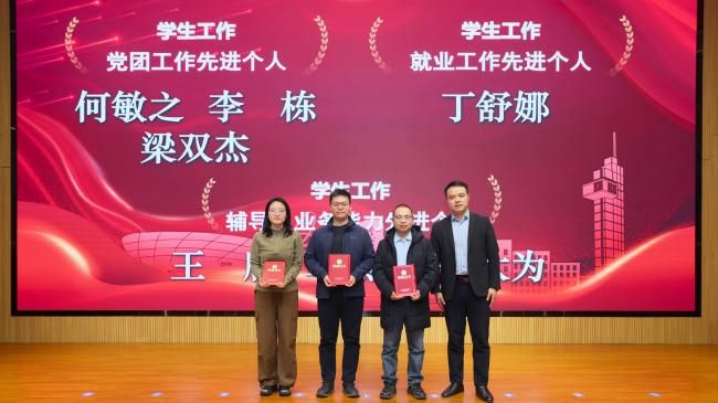 为进一步发挥示范引领作用,激励广大教职工立足岗位勤奋工作,为学院发展作出更大贡献,学院对2025年度在师资队伍、人才培养、科学研究、学生工作、党建工作、服务育人等方面表现突出的教职工予以表彰。学院组织员王卫东现场宣读了学院表彰先进人员的决定。学院领导班子成员分别为获奖代表颁发荣誉证书并合影。