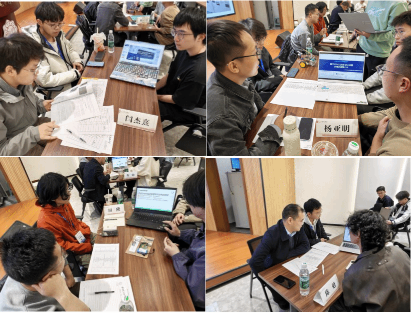 比赛现场特邀闫杰熹、杨亚明、田隆、陈勉四位老师及校团委实践部同学作为评审嘉宾,参赛选手按照既定分组和顺序,依次从创作思路、技术原理、实现难点及创新亮点等方面向评委进行展示。《玄知——全球首个密码学垂直领域专业大模型》《Project Echo:AI桌宠框架》《SU3PT智能驱动的去模板化演示内容创作引擎》……一件件优秀作品不仅是同学们将科技与梦想融合的智慧结晶,更彰显了西电学子以技术创新服务社会、助力民生发展的青年使命担当。评审环节中,专家们从技术深度、创新性、应用价值及未来发展潜力等维度,与参赛选手展开深入交流,在肯定项目亮点的同时,也针对技术优化、落地可行性等提出建设性意见,帮助同学们进一步完善作品。现场思维碰撞、互动频繁,充分展现了青年学子的科创热情。