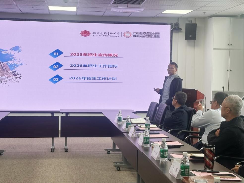 最后,党委书记李青山作动员讲话,从招生工作的重要意义、责任使命出发,对2026年招生工作进行全面部署。他强调,全体人员要提高思想认识,杜绝“临时抱佛脚”,制定统一宣传路线图,组织教师有计划、分批次赴省内外重点中学开展科普讲座、现场咨询,实现高一高二提前引流、高三精准对接,确保招生宣传“有渗透力、有实效性”。二是建强宣传队伍,提升专业服务能力,对参与招生的教师开展全员培训,覆盖科普PPT制作、宣讲技巧、政策解读等核心内容,系统梳理学校、学院优势专业、亮点成果,讲好西电故事,打造专业化、稳定化的招生宣传队伍。三是落实分省份分工负责不同区域招生任务,学院层面统筹协调资源,制定学院2026年本科招生工作总体方案,细化分省分校宣传计划,持续创新宣传方式、拓展宣传渠道,以更高标准推动招生工作迈上新台阶。