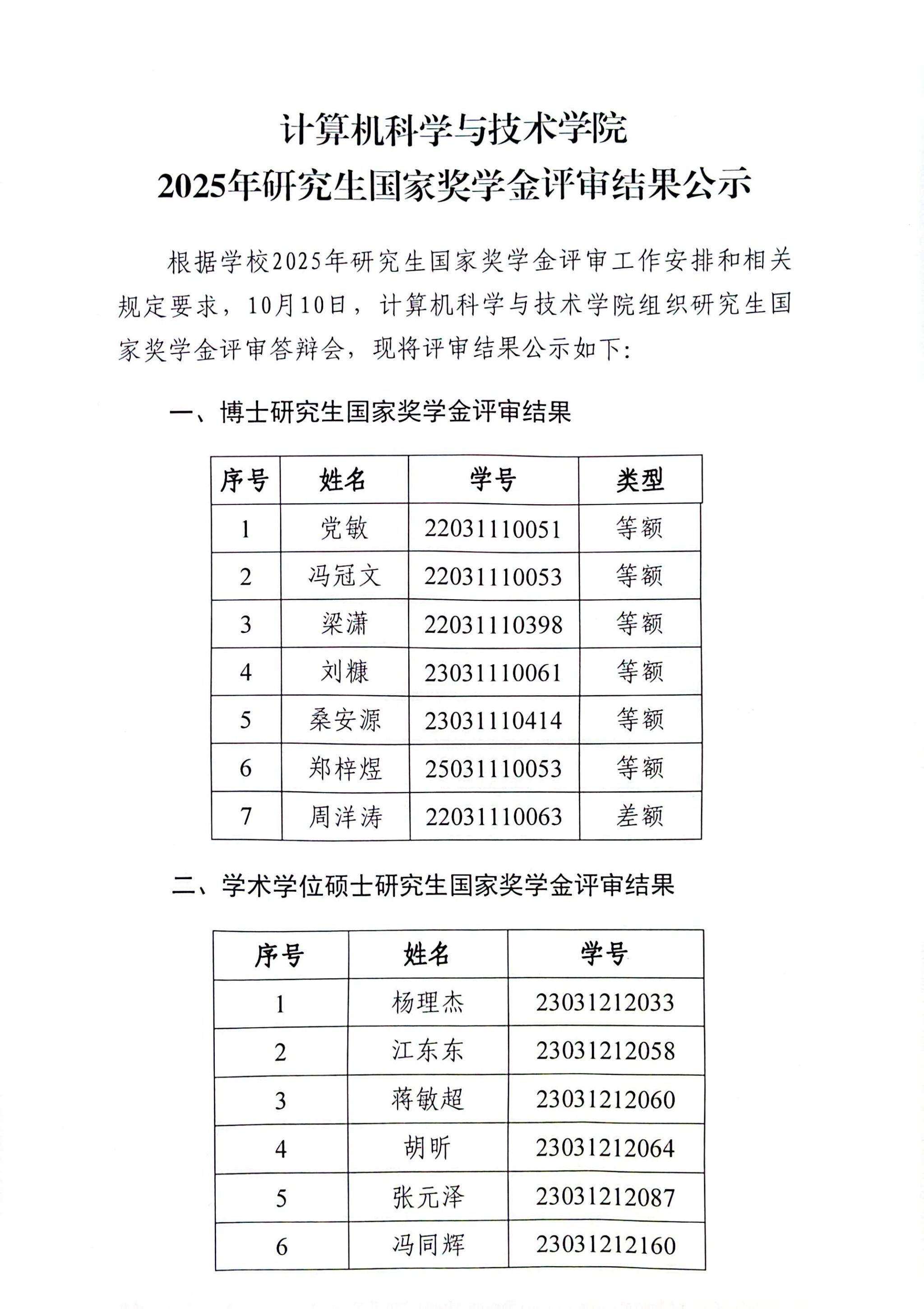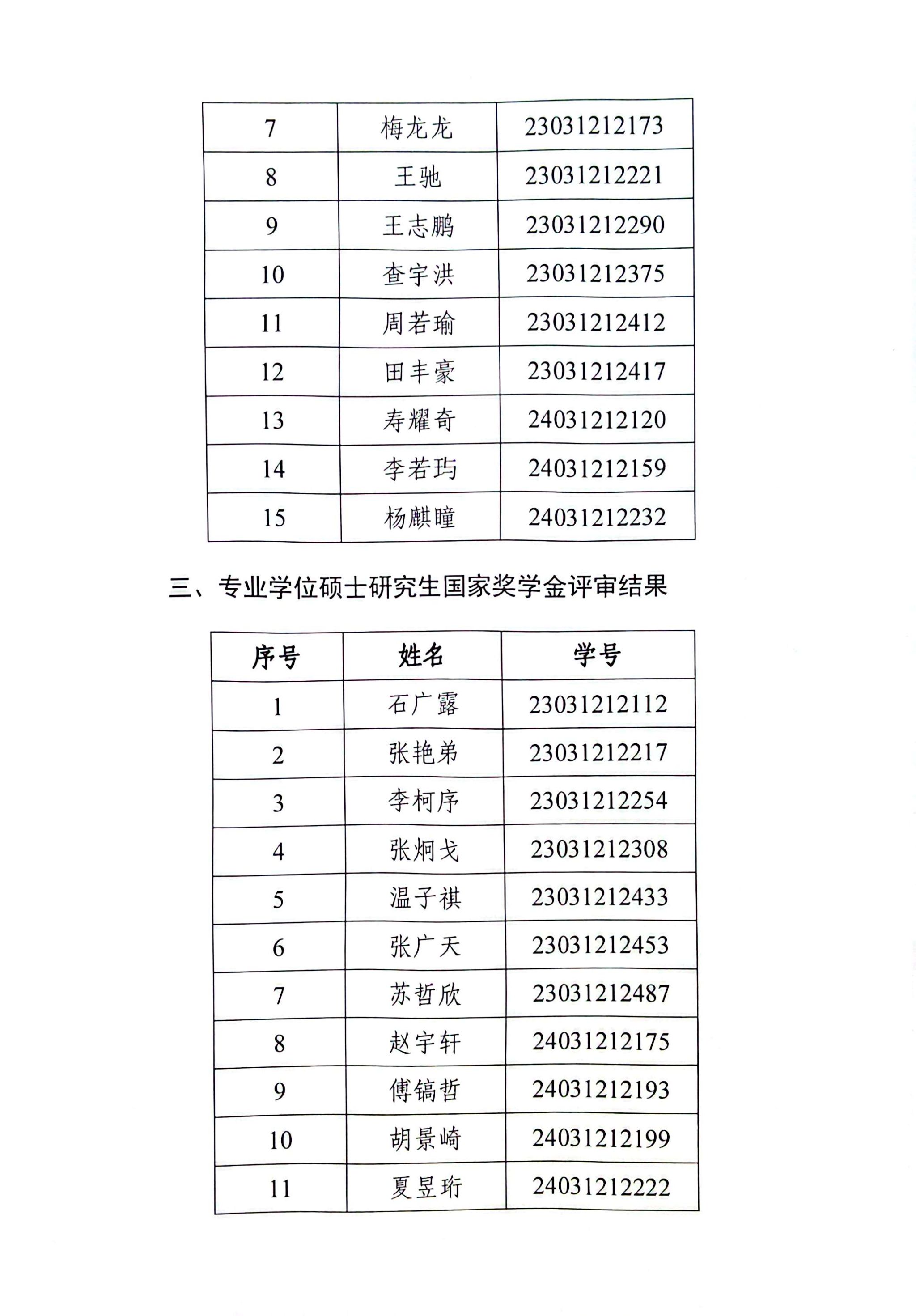 yl7703永利集团2025年研究生国家奖学金评审结果公示