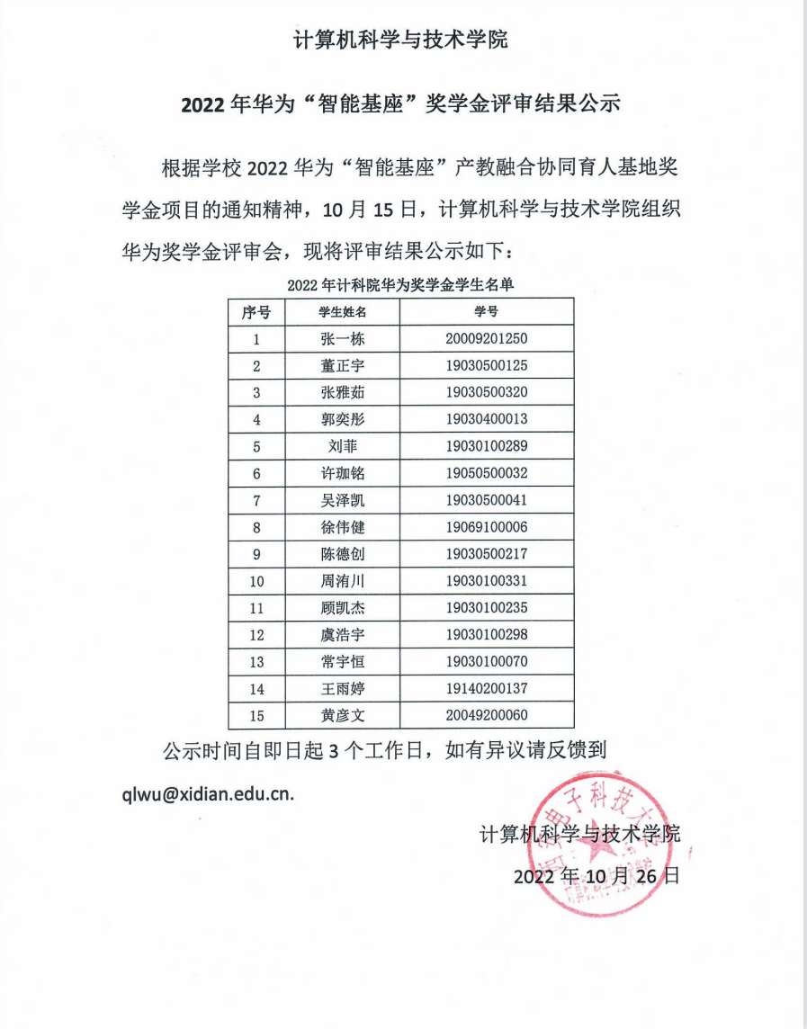 yl7703永利集团2022年华为“智能基座”奖学金评审结果公示