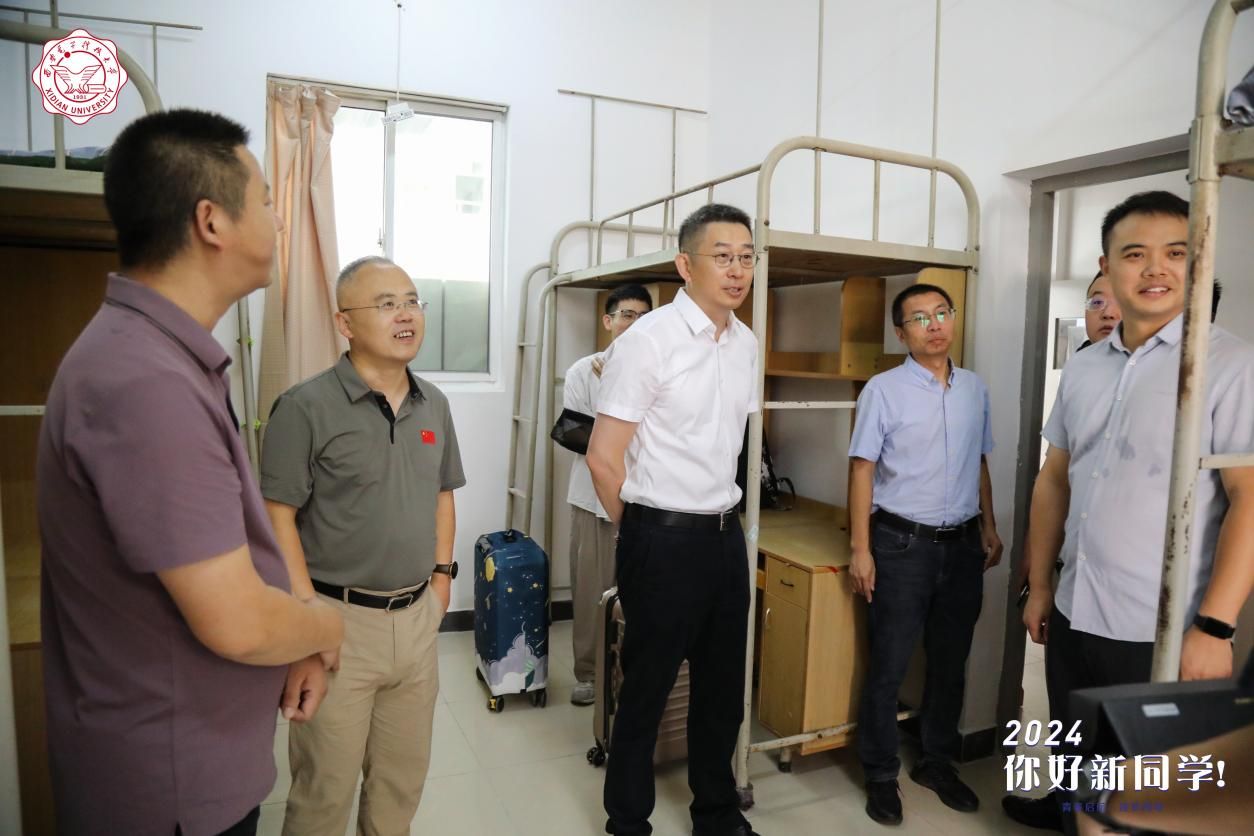 8月31日上午,yl7703永利集团党委书记李青山、执行院长崔江涛、副院长万波、副院长李瑞,党委副书记黄成龙及新生辅导员,前往竹园3号楼学生公寓,走访部分学生宿舍,对新生表达关心和慰问。