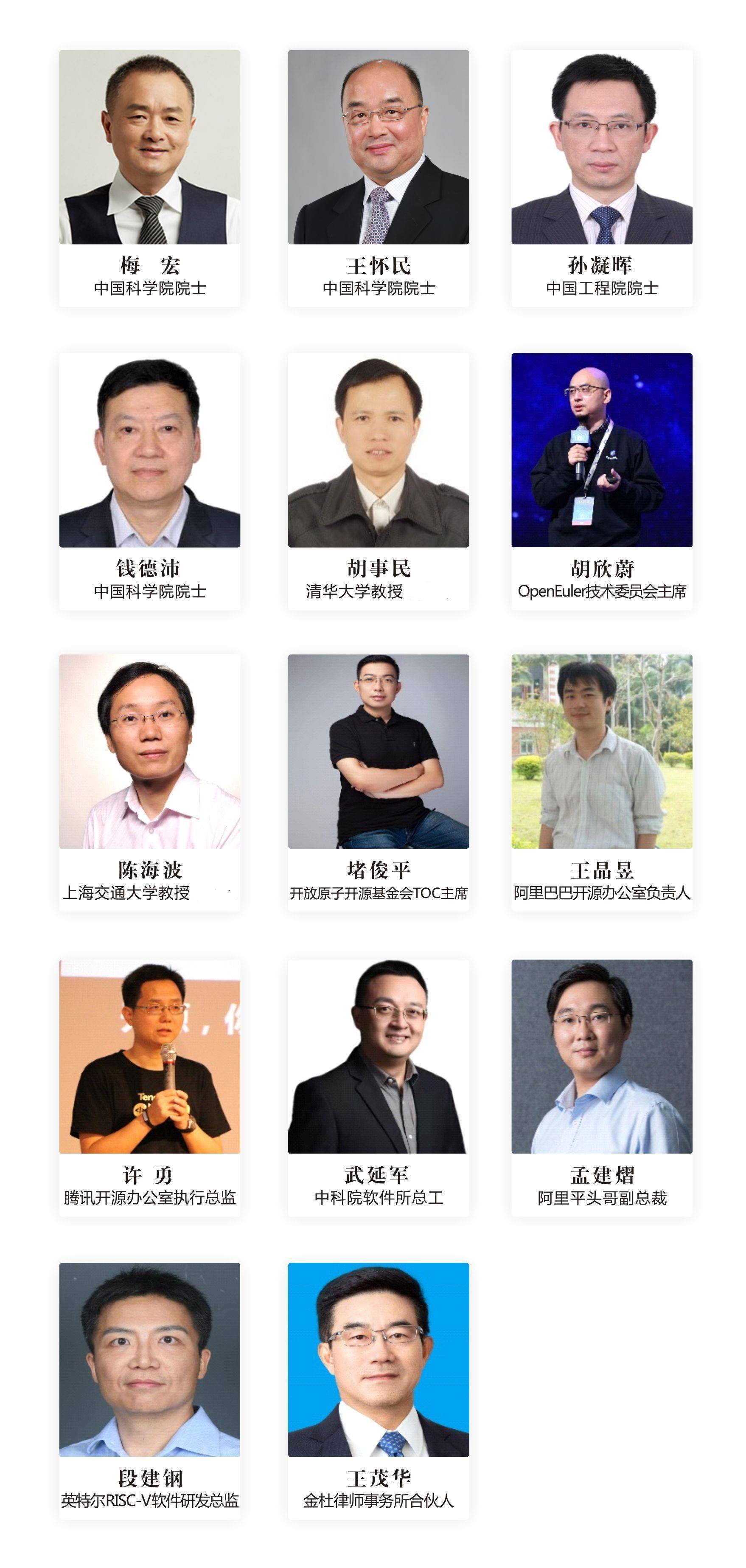 作为第一届CCF中国开源大会,本届大会将组织特邀报告、开源高峰论坛、开源发展委员会路演、社区论坛、技术论坛、教育论坛、开源创新大赛培训等20余个不同类型的活动。大会将邀请10余位开源及相关领域中国科学院院士、中国工程院院士与知名专家,为大会带来特邀报告并参加开源高峰论坛等活动。目前已邀请参会的两院院士与知名嘉宾包括中国科学院院士梅宏,中国工程院院士廖湘科,中国科学院院士王怀民,中国工程院院士孙凝晖,中国科学院院士钱德沛,工信部科技司司长谢少锋,清华大学教授胡事民等。本届大会预计将吸引参会单位超过100家,作为中国开源领域的年度盛会,诚挚地邀请开源领域学术界、企业界、教育界的学者、从业者、师生等前来参会!
