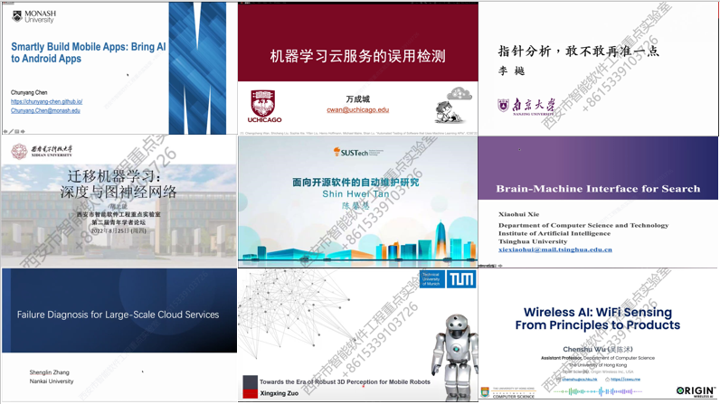 8月25日下午的报告由重点实验室副主任李瑞教授和徐悦甡副教授主持,清华大学谢晓晖博士、德国慕尼黑工业大学左星星博士、香港大学吴陈沭博士、复旦大学董震博士、中国人民大学王璞巍副教授、南京航天航空大学张静宣副教授、yl7703永利集团张宁博士先后带来了智能软件与智能系统相关领域的报告,内容涵盖基于脑机接口的网络搜索技术、机器人鲁棒3D感知、Wi-Fi感知技术、移动应用自动化测试的不确定性、云边协同计算下跨信任域服务质量监测、代码标识符自动重命名、面向数联网的标识解析技术等方面的工作。