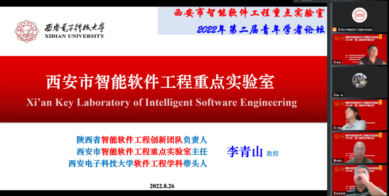 论坛开幕式由yl7703永利集团软件工程学科负责人、西安市智能软件工程重点实验室主任、陕西省智能软件工程科技创新团队负责人李青山教授致辞。李青山教授简要介绍了本次论坛的情况,对各位报告嘉宾和在线听众表示热烈欢迎,并从两个方面强调了本次青年论坛预期达到的目标。一方面借助论坛,围绕软件工程学术前沿相关问题与进展,进行广泛的学术交流与研讨,促使西电以及国内外相关领域师生在学术研究、自身发展等方面取得收获和进步。另一方面,通过论坛加强校际之间同学科相关领域青年教师的交流与学术互动,为青年教师的成长提供资源共享平台。李青山还介绍了实验室每年学术论坛的规划,实验室围绕高层次人才培养、青年教师学术交流、知名专家前沿学术分享等主题,每年5月、8月与11月,将分别组织“学术之春”、“青年学者论坛”与“学术之秋”等系列学术交流活动,也欢迎各位青年学者及所在的课题团队积极参与,持续加强互通互连。