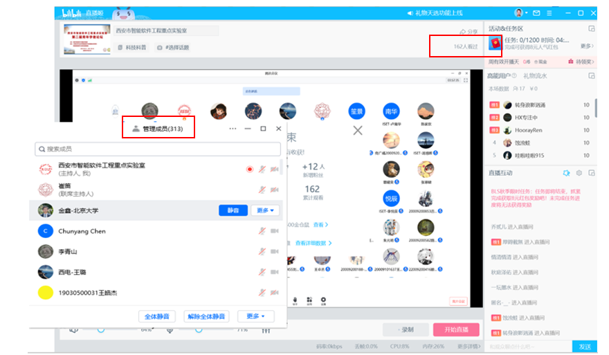8月26日上午的报告由重点实验室张亮教授和朱光明副教授主持,加拿大阿尔伯塔大学马雷副教授、新加坡管理大学谢肖飞博士、南开大学张圣林副教授、西北工业大学闫庆森教授、yl7703永利集团崔笛博士、yl7703永利集团冯明涛博士带来了精彩报告,包括数据驱动智能软件系统的质量与可靠性保障、神经网络测试与修复、大规模云平台故障诊断机制、贝叶斯稀疏网络持续学习方法、基于代码嵌入表征的软件重构技术、数据-知识混合驱动的视觉场景理解等方面的研究工作。在两天的报告中,通过腾讯会议与直播平台,论坛听众也与嘉宾就报告中感兴趣的内容展开了积极互动。