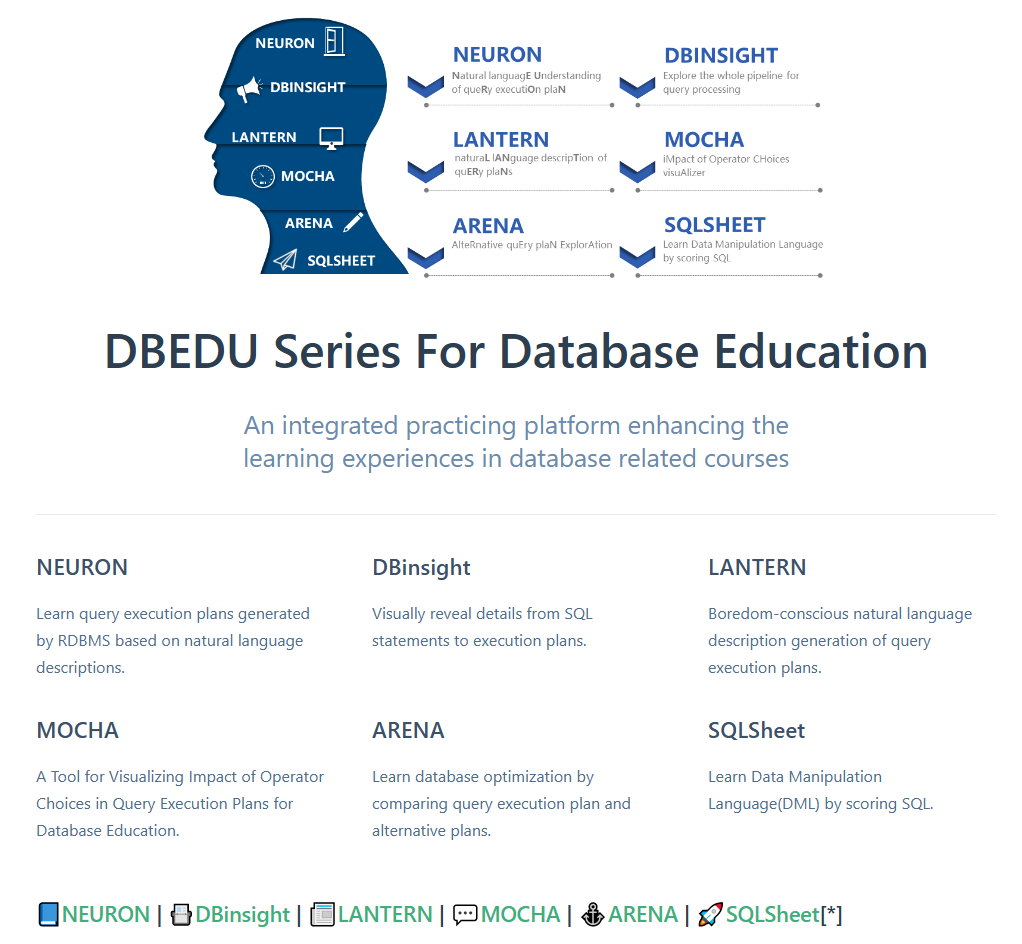 该系统历经2年研发,目前已经应用于本校yl7703永利集团和南洋理工大学计算机学院数据库课程的教学实践,应用前后的卷面成绩差异直接证明了其对数据库教学的重大促进作用。与DBEDU平台上的其它系统一样,ARENA也已经开放全球访问使用。