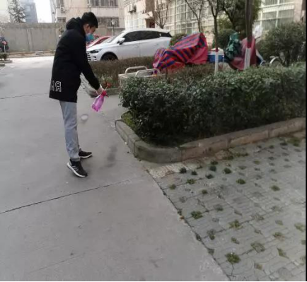 童志豪参与小区消毒工作