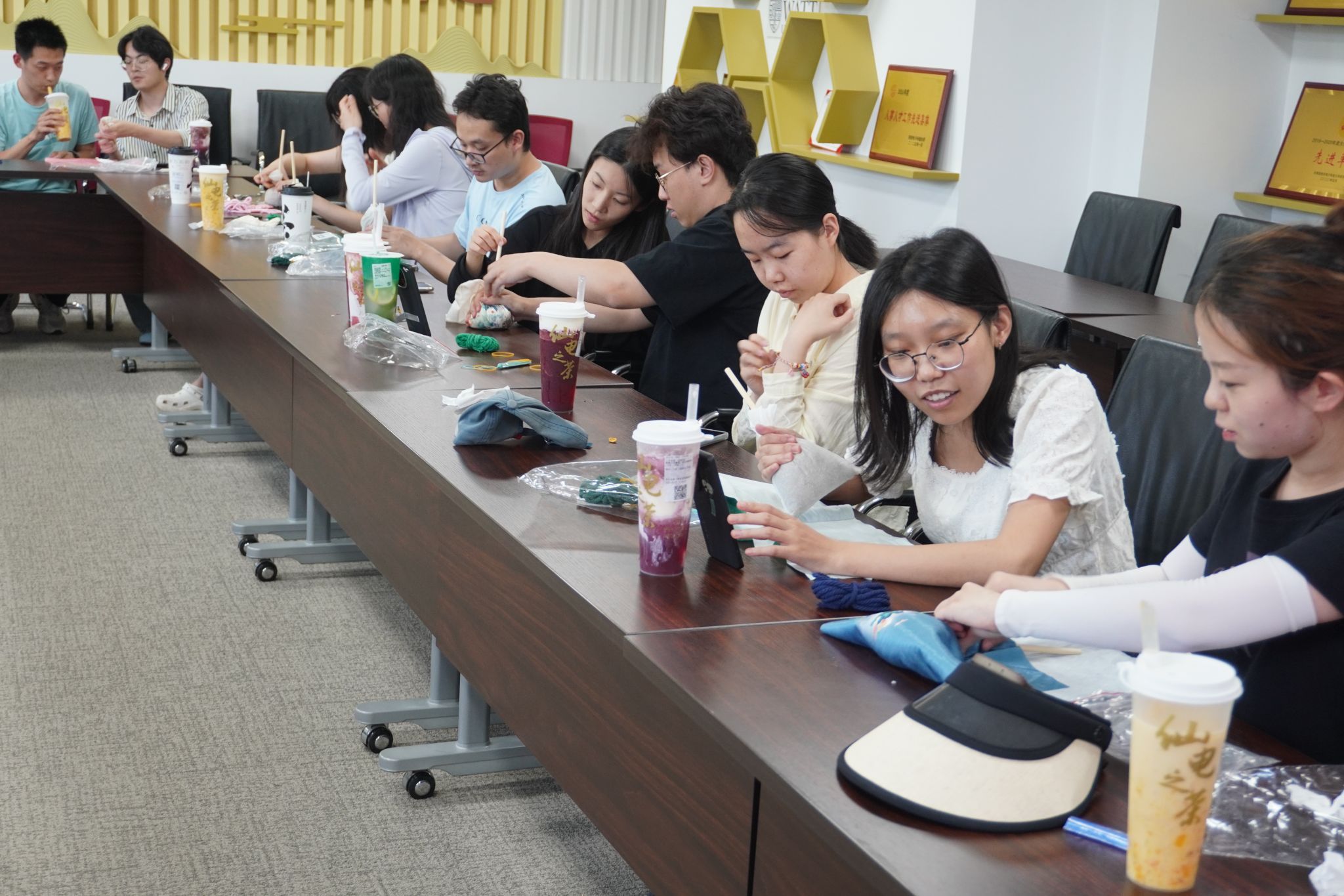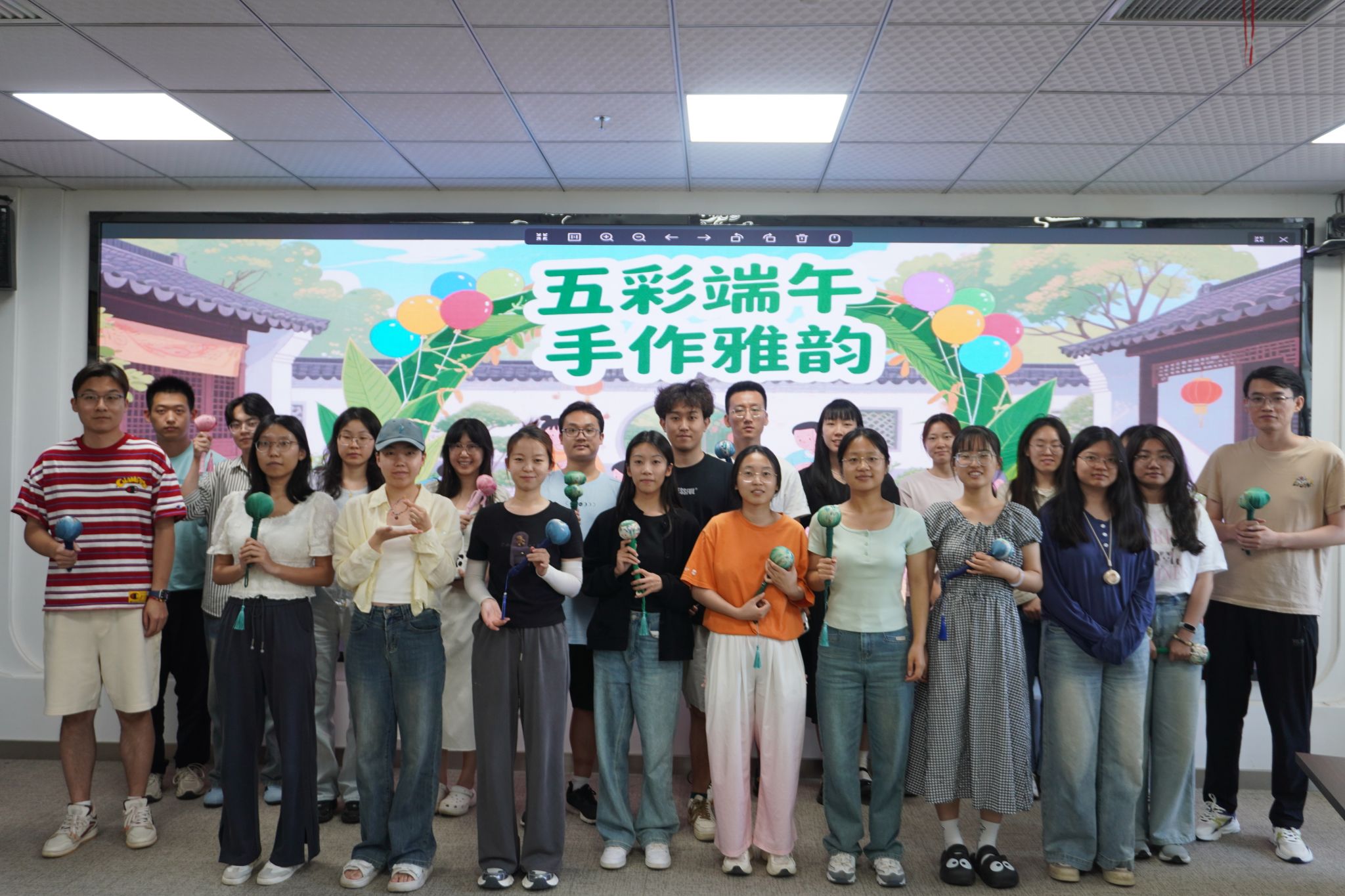 活动尾声,同学们将制作完成的艾草锤悬挂在实验室,五彩绳系于书桌前,这些融入个人情感的手工作品成为持续的心理锚点。正如现场一位博士研究生同学所说:“每当敲代码累了,看到墙上的艾草锤,就会想起制作时那种平静的状态,仿佛传统文化在默默给予我能量。”