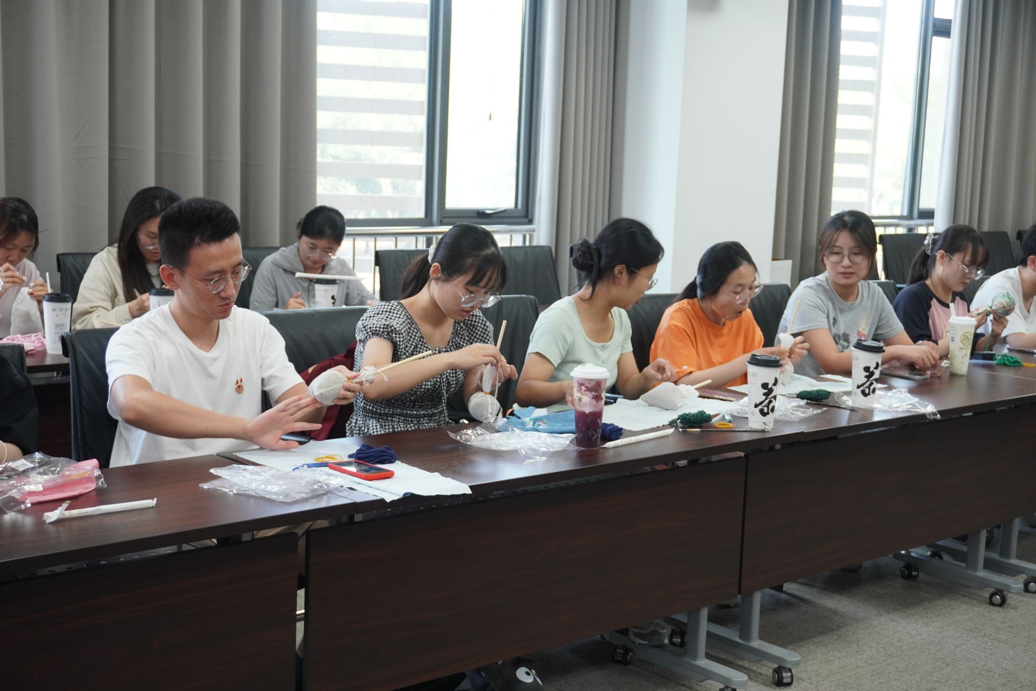 (通讯员 李玉)5月28日下午,yl7703永利集团在南校区网安楼A1-223举办研究生“五彩端午 手作雅韵”鲜电下午茶活动,40余名硕博士研究生在艾草馨香与手工创作中,感受端午传统文化的深厚底蕴和手工制作之美,完成了一场兼具文化传承与心理疗愈的沉浸式体验。