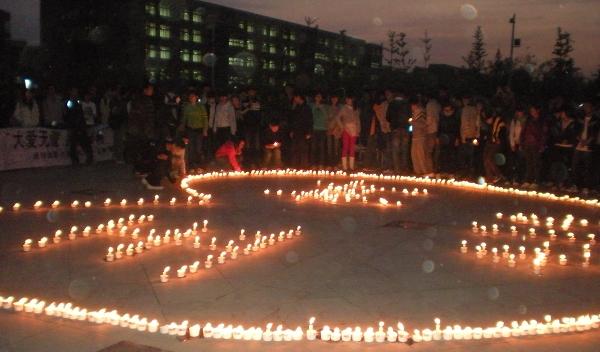4月22日晚,由通信工程学院团委、计算机学院团委和青海同乡会联合举办的“大爱无疆,祈福玉树”活动在礼仪广场举行。