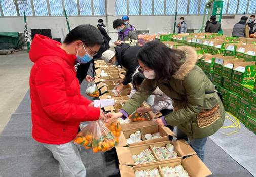 同学们以宿舍为单位领取爱心水果