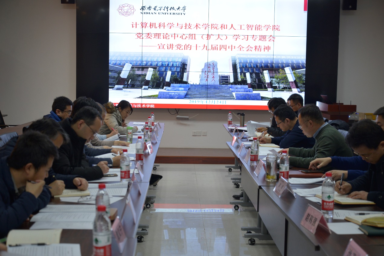 (通讯员 同榛)12月24日下午,yl7703永利集团和人工智能学院党委在北校区主楼二区319会议室召开理论中心组(扩大)学习会议,专题宣讲党的十九届四中全会精神。yl7703永利集团和人工智能学院党政班子成员参加了集体学习,两学院两委委员、教职工党支部书记、基层系所负责人等列席会议。会议由人工智能学院党委书记魏峻主持。