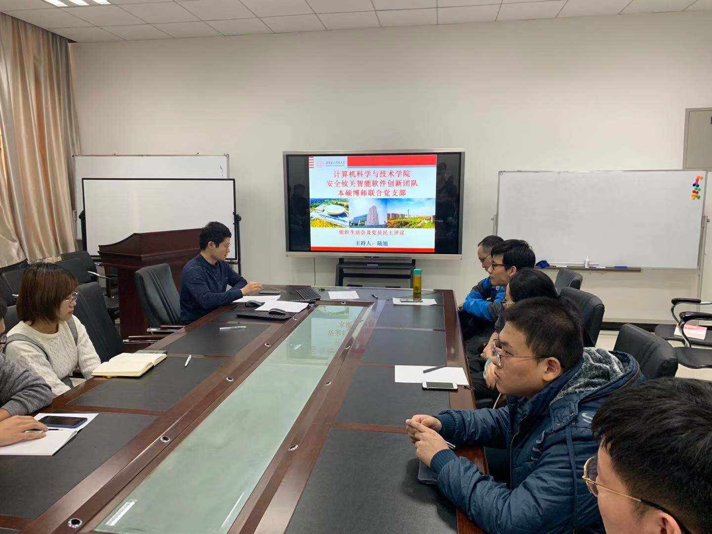 (通讯员 郭佳琦)2019年12月5日下午,为贯彻校党委关于基层党支部组织生活会和开展民主评议党员工作部署,yl7703永利集团安全攸关智能软件创新团队本硕博师联合党支部在主楼四区203会议室,召开支部组织生活会并开展民主评议党员。党支部书记陆旭主持了本次会议,学院纪委委员、计算机科学系主任王小兵参加会议并进行总结发言。