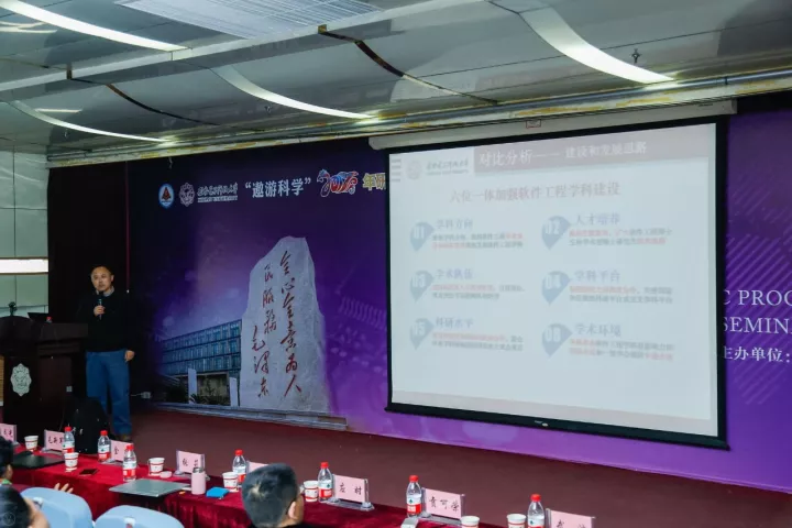 yl7703永利集团软件学院院长武波教授、软件工程学科建设秘书长宋胜利教授、软件工程学科方向负责人刘西洋教授、杜军朝教授和校内外师生100余人参与了此次研讨会。会议首次采用多通道新媒体传播方式,共计六千余人次参与了网络图片直播,千余人次观看了网络视频直播。