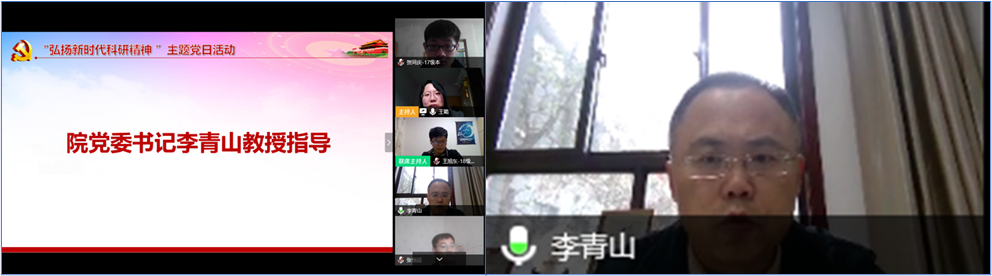 之后,支部研究生党员代表和本科生党员代表分别结合自己的科研工作讨论科研体会与心得。汪丹同志提出在科研工作中,要学习先进科研榜样身上那种埋头苦干、潜心钻研的工作态度,要脚踏实地、持之以恒;吕文琪同志提到做研究最主要的是找到一个正确的科研思路,并分享了个人的科研过程划分经验以及在疫情期间提高工作效率的四象限时间管理法;李尉铭同志提出在家做科研会缺少与同学交流的机会,环境也会影响效率,所以一定要营造一个良好的氛围;鲍珂同志将科研精神总结为三点,第一点就是团结合作、业贵于专,第二点是为山九仞而非一日之功,第三点是荣辱不惊、百尺竿头;曹堉栋同志提出了五点经验:多阅读、多思考、多沟通、多实验和有耐心;范中豪同志提到在研究过程中,耐心和细心是最重要的,一个良好的规划和一个良好的心态也能够让工作更加的顺畅。
