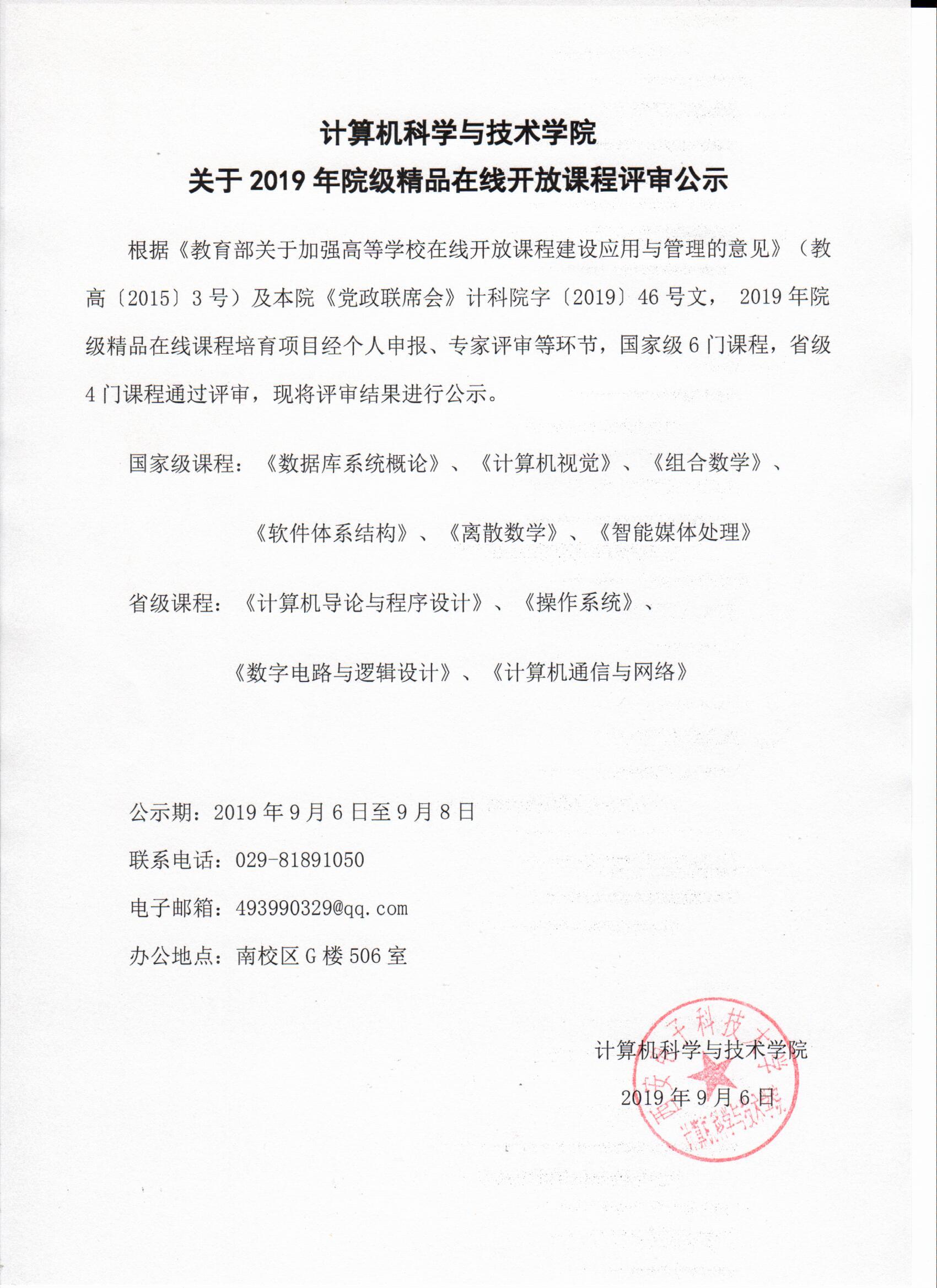 yl7703永利集团关于2019年院级精品在线开放课程评审公示