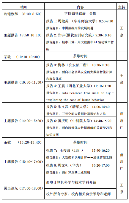 本次研讨会围绕大数据共性关键技术,如大数据生态与系统、大规模并行数据库、流式计算与内存计算模式、大数据分析调度与优化、大数据知识图谱、大数据智能挖掘处理算法、大数据可视化、大数据安全与隐私保护、大数据分布式计算与深度学习、智能视觉大数据、生物大数据挖掘等核心内容,邀请国内外高等院校、研究院所和知名互联网企业等大数据领域知名专家与学者到会,通过主题报告、圆桌论坛(Panel)和交流沙龙等形式,组织校内外师生共同进行深入探讨和交流,分享大数据分析领域的理论研究和核心技术新进展,促进我校大数据相关学科领域更好地建设和发展,扩大我校“计算机科学与技术”一流学科的知名度和影响力。