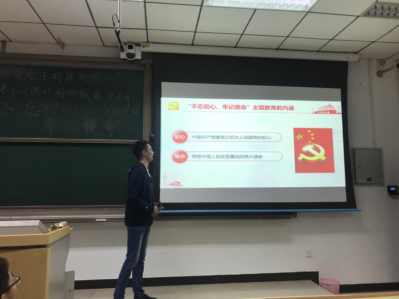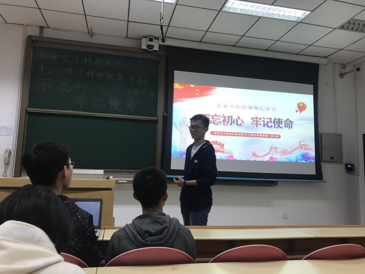 (通讯员 翟恋 徐聪)2019年10月10日,yl7703永利集团本科2016级计科物联第一党支部在南校区信远1区118教室开展了“不忘初心、牢记使命”主题党课。yl7703永利集团本科2016级计科物联第一党支部副书记张俊华同志作为本次党课的主讲人,将主题党课分为多个模块,与同学们一同探讨了大学生党员应该如何践行“不忘初心、牢记使命”。