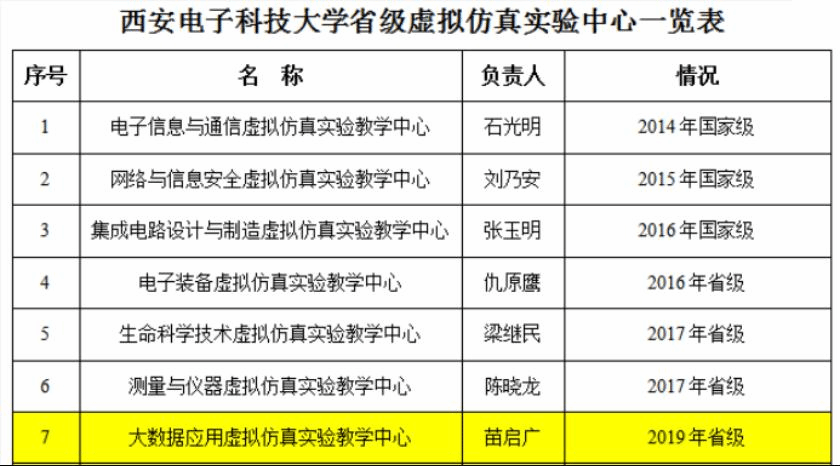 我院于2019年初就开始积极筹备虚拟仿真实验教学中心的建设。根据学院专业建设发展规划,建立了有利于培养学生实践能力与创新能力的实验教学体系。同时,持续加大虚拟仿真教学队伍与教学资源的建设,并建立了现代化的管理机制,确保了虚拟仿真实验教学中心的建设质量,已取得初步成效。在2019年省级虚拟仿真教学平台与项目的评选中,苗启广教授负责的“大数据应用虚拟仿真实验教学中心”被认定为省级虚拟仿真实验中心,沈玉龙教授负责的“物联网虚拟仿真实验”被认定为省级虚拟仿真实验教学项目。