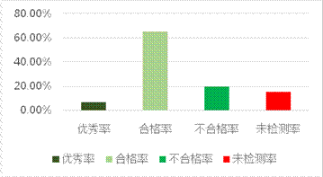 论文检测完成之后,通过平台智能统计分析功能,掌握全院毕业生论文格式整体情况,了解不同专业学生水平,同时在后期的论文指导中加强管理,推进学院毕业论文质量持续改进。2020届共有984人申请毕业设计,系统自5月14日开放使用以来,累计检测论文5165次,单人平均检测次数为6.1次。表1和图3为学院整体检测状态,其中67人没有错误,质量优秀,比例为6.8%,合格人数642人,比例为65.2%。