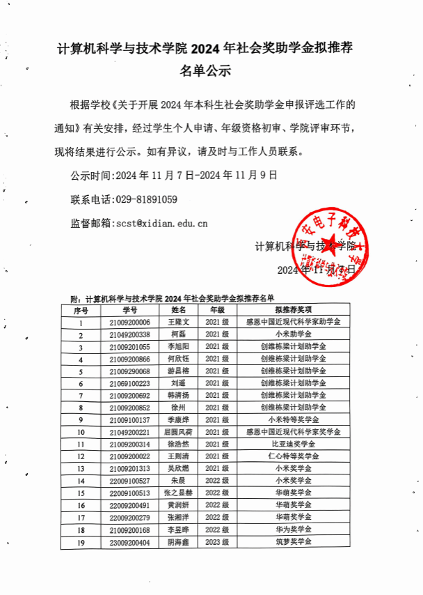 yl7703永利集团2024年社会奖助学金拟推荐名单公示