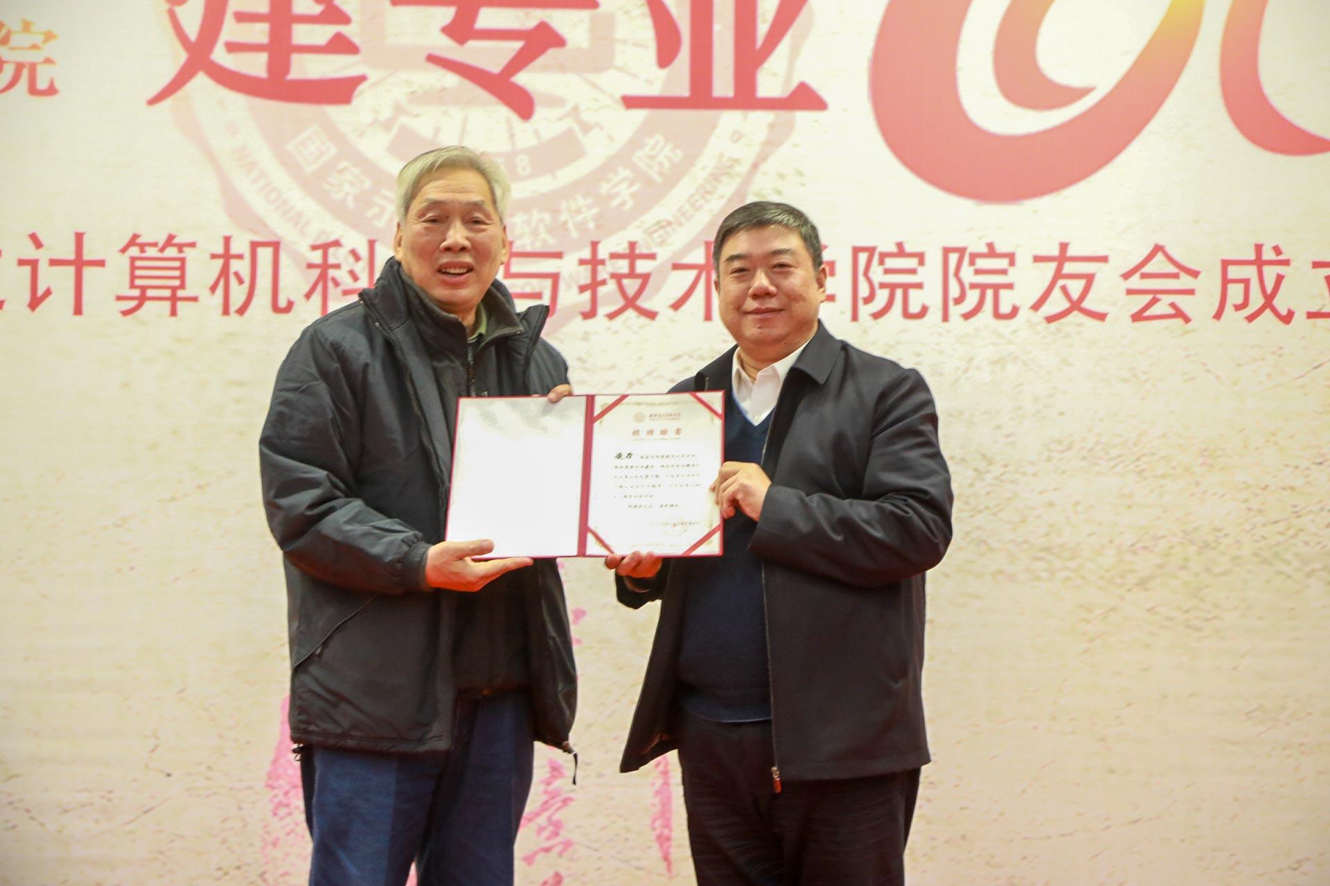 会议还举行了院友捐赠仪式。学院老教师周利华、徐学洲代表1957级校友朱保马向学校捐赠三件物品,包括102机插件、441-B机插件、Rockwell AIM65电脑。据介绍,102机是我国第一台军用数字计算机,1962年上级批准调至我校供教学使用,是当时西北地区唯一一台电子计算机。441-B计算机是我国计算机由电子管向晶体管升级换代的晶体管计算机,我院教师参与生产,1967年交付某海军基地使用,稳定运转近二十年。Rockwell AIM65电脑1978年研发成功,采用美国MOS Technology公司的6502处理器,可使用Pascal,FORTH语言进行编译。周利华老师代表1960级院友、茅盾文学奖获得者凌力向学校捐赠个人作品文集以及珍贵手稿。1959级院友徐宗昌向学校捐赠IETM技术与应用丛书一套、《IETM项目经理入门指南》一册。杨银堂为捐赠人颁发了捐赠证书。