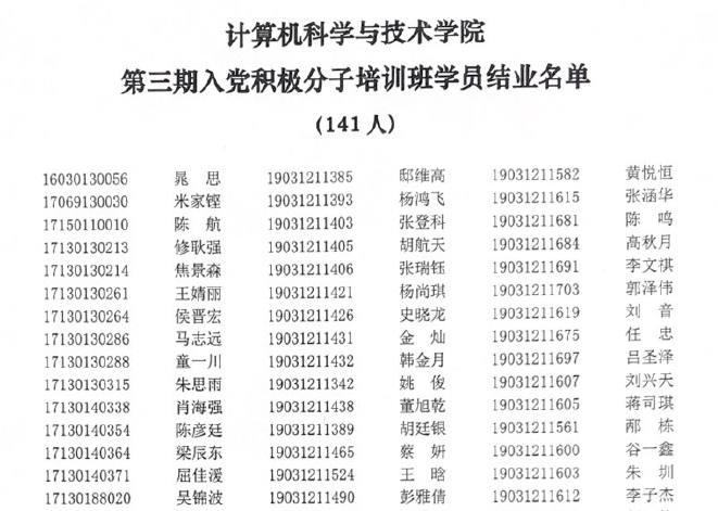yl7703永利集团第三期入党积极分子培训班学员结业名单