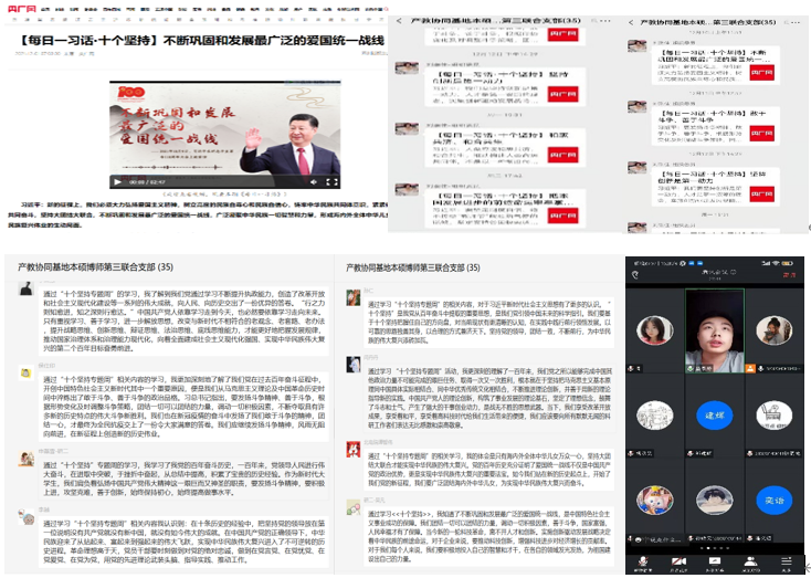(通讯员 李鑫)12月9日至12月15日,yl7703永利集团产教协同基地本硕博师第三联合党支部线上举办十九届六中全会精神专题学习周活动。此次活动分两阶段进行,第一阶段围绕“十个坚持”每日发布学习内容到支部群,党员们自主学习并交流学习心得;第二阶段支部集中学习,于12月15日讨论总结。
