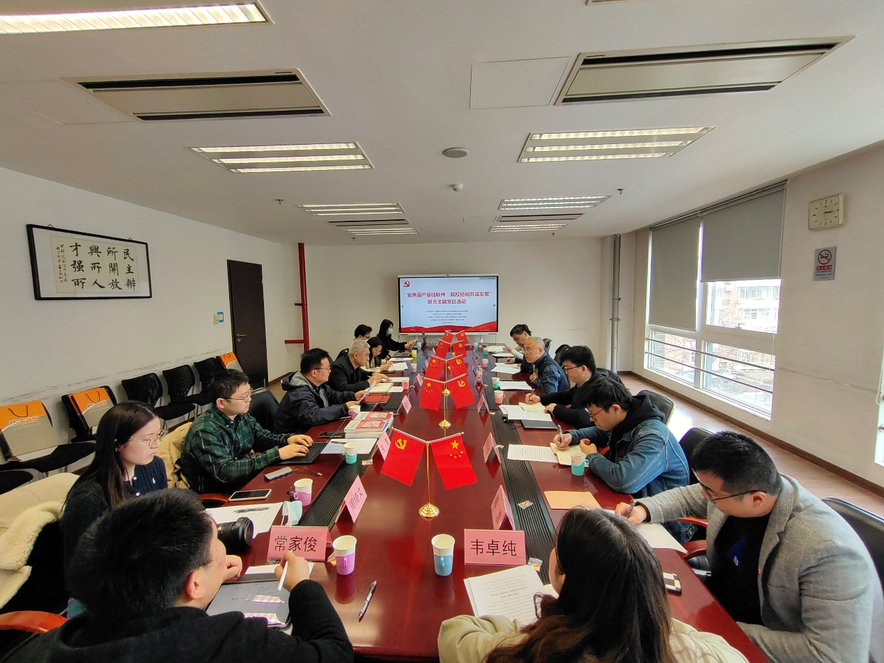 双方均表示,要以党的二十大精神为指引,加强党委和党支部层面的交流,积极分享经验做法,加强国产自主可控基础软件领域科研合作,以国家重大战略需求为导向开展关键技术攻关,深化党建、人才培养、科学研究、就业等多领域合作,为加快实现高水平科技自立自强贡献力量。