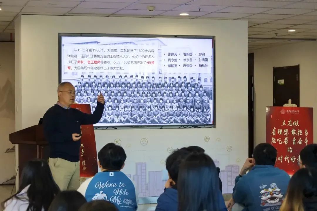 李青山教授追溯了西电在党和国家领导人悉心关怀下,始终与党同心,与共和国同行的办学历史,在艰苦卓绝的环境下造就人才培养“西电现象”,梳理了以此为背景,西电三系的历史沿革、学科建设、科学研究和人才培养成效,解读了“胸怀祖国、科学求实、敢为人先、追求卓越”的“三系”精神和“严谨、担当、勤勉、开放”的学院院训的凝练过程,勉励同学们自觉做“三系”精神的传承者,与国同行锐意进取,实现科技报国的责任担当,到祖国最需要的地方建功立业!