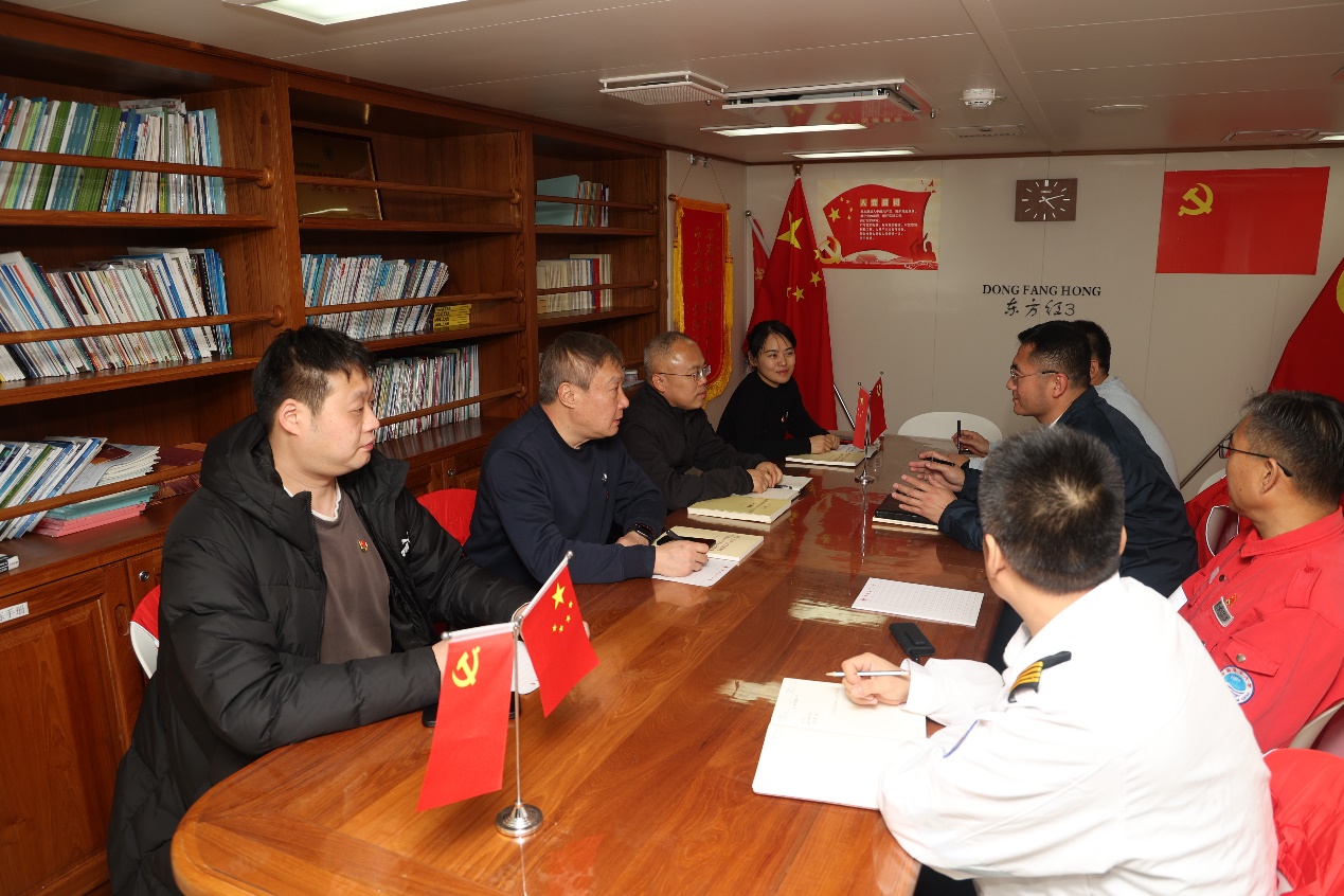 为进一步加强党组织交流,以党建引领双方多维度合作,在行进的“东方红3”科考船上,西电yl7703永利集团党委书记李青山,青岛研究院副院长、产教融合本硕博师联合党支部书记向麟海与中国海洋大学船舶中心党总支书记、中国海洋大学船舶中心主任王毅,中国海洋大学研究生院副院长刘海波,东方红3船党支部书记王辉、船长于少杰等共同开展了党组织共建座谈会。