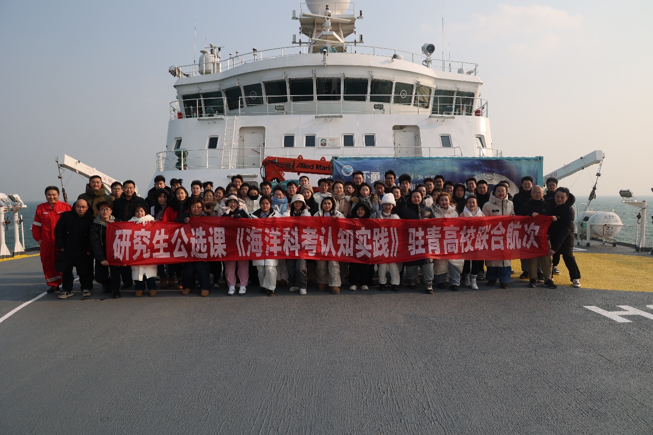 本次活动由五所高校联学共建,是一次充满“海味”的爱国主义海上流动“红色学堂”。西电yl7703永利集团与中国海洋大学、山东大学、山东科技大学、中国石油大学(华东)等高校共110名师生共同登上“东方红3”科考船,现场学习《海洋科考认知实践》公共选修课。