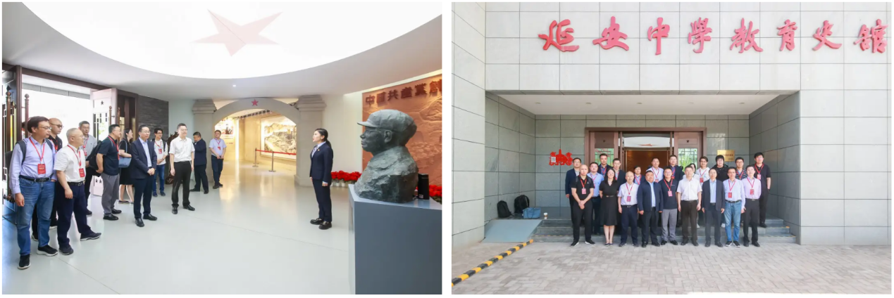 在延安中学校长郭博的陪同下,与参会嘉宾沿着习近平总书记2022年10月26日进校参观时的足迹参观了延安中学校史馆,感受中国共产党创办的第一所中学辉煌的历史和厚重的文化。延安中学是在老一辈无产阶级革命家、教育家、党和国家领导同志亲切关怀和精心培育下成长起来的,毛泽东主席题词“光明在前”,周恩来总理题词“艰苦奋斗,努力学习”,习近平总书记亲切嘱托:“坚持用延安精神教书育人,办好人民满意的教育,弘扬革命传统,培育时代新人”。通过参观,与会嘉宾深刻领悟“培养什么人”“怎样培养人”“为谁培养人”,让教育初心薪火相传,历久弥新。
