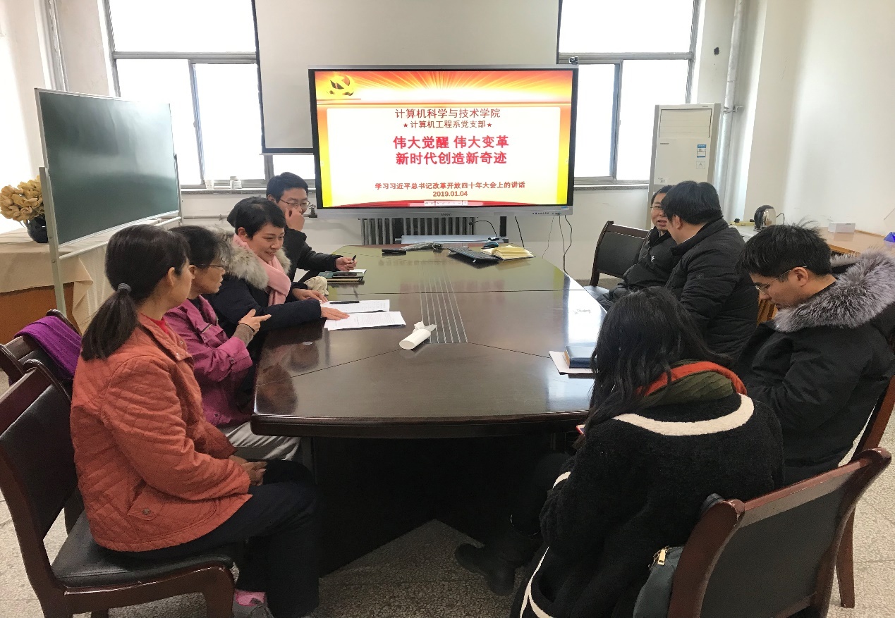 (通讯员:杨鹏飞 鱼亮)历史的发展有其规律,只要把握住历史发展大势,抓住历史变革时机,奋发有为,锐意进取,就能更好前进。12月18日上午,在庆祝改革开放40周年大会上,中共中央总书记、国家主席、中央军委主席习近平在大会上结合我国40年来改革发展辉煌历程发表重要讲话。1月4日下午,在2019新年的第一个支部主题活动日中,yl7703永利集团工程系支部召开专题学习会,深入学习习近平总书记重要讲话精神,集中开展研讨交流。学习会由支委委员杨鹏飞代班主持,工程系党员同志参加。