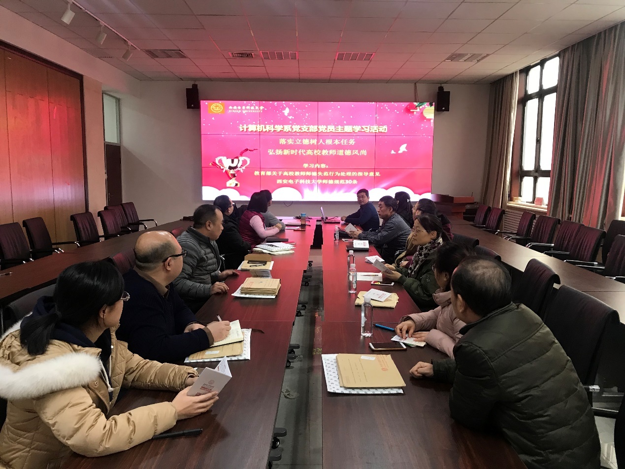 (通讯员 王晓丽,同榛)2018年12月25日下午,yl7703永利集团计算机科学系党支部在北校区主楼二区319会议室召开以“落实立德树人根本任务、弘扬新时代高校教师道德风尚”为主题的学习活动,深入学习了《新时代高校教师职业行为十项准则》、《教育部关于高校教师师德失范行为处理的指导意见》和《yl7703永利集团师德规范30条》。计算机科学系全体党员参加,会议由计算机科学系党委书记戚玉涛同志主持。