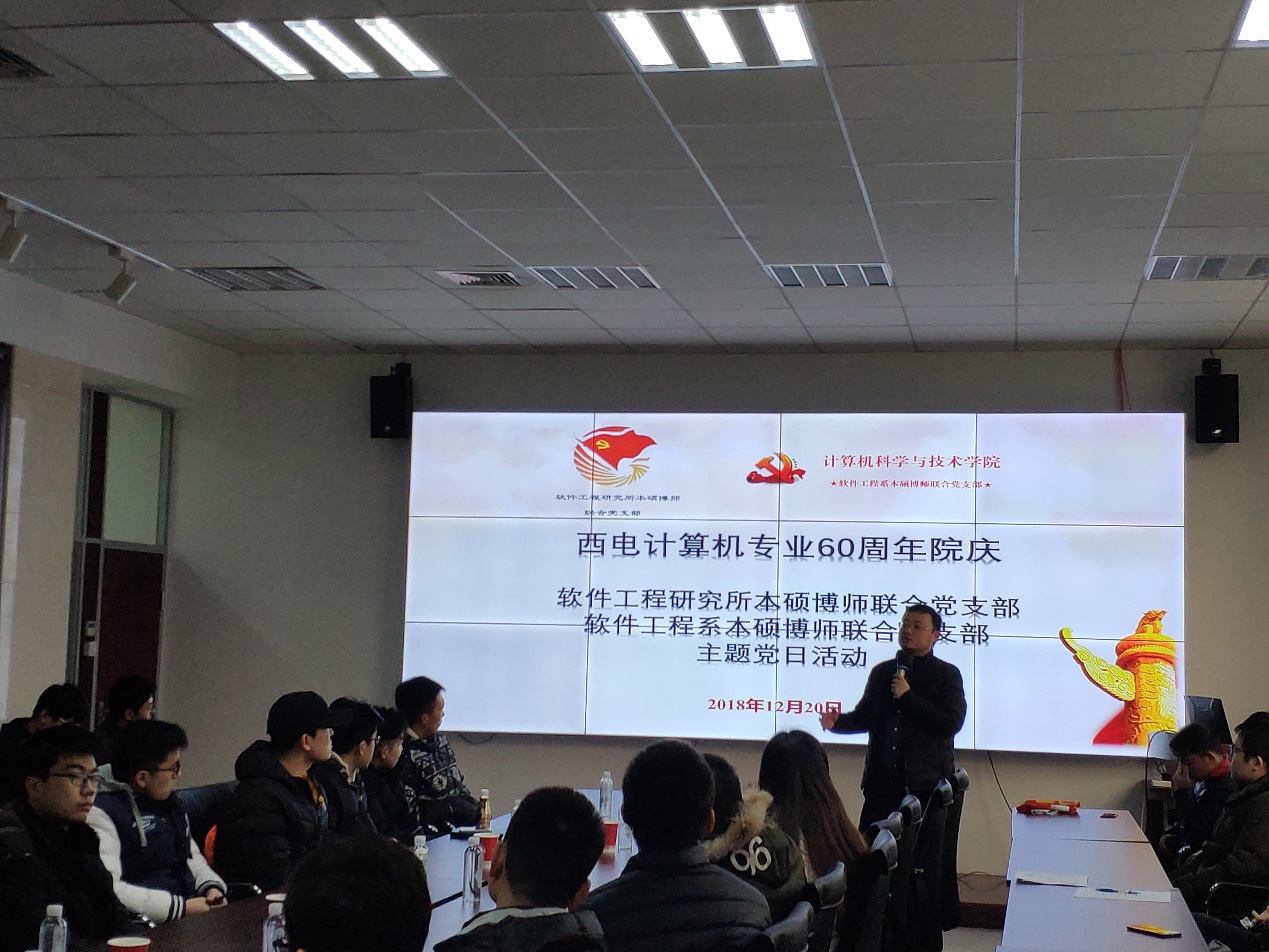 (通讯员:赵海洋 田文生)12月20日,值此西电计算机建专业60周年之际,软件工程研究所本硕博师联合党支部和软件工程系本硕博师联合党支部,联合开展“西电计算机专业60周年院庆”主题党日活动。本次活动主要回顾了yl7703永利集团建专业60周年以及软件工程发展50年历程,解读了国家软件发展战略、国家软件人才需求情况和西电软件工程专业的发展状况;王璐博士与师弟师妹们就大家关心的奖助体系和培养体系进行了介绍。会议也积极讨论了关于支部建设和党组织活动开展的重要事项。会议由软件工程系本硕博师联合党支部书记李瑞老师主持。
