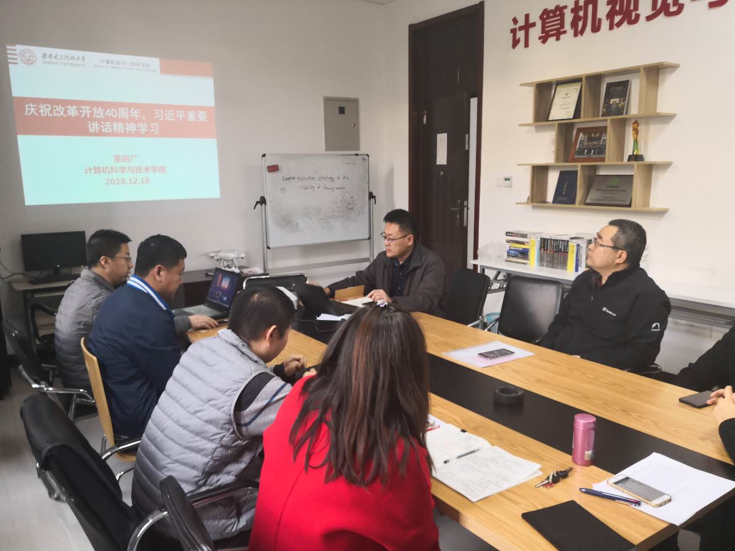 (通讯员 王琨)12月18日上午,庆祝改革开放40周年大会隆重召开。中共中央总书记、国家主席、中央军委主席习近平出席大会并发表重要讲话。当天下午,yl7703永利集团网络工程系党支部在主楼四区225开展了学习“习近平在庆祝改革开放40周年大会上的重要讲话”主题党日活动。本次活动由支部书记苗启广教授主持,支部党员参加学习。