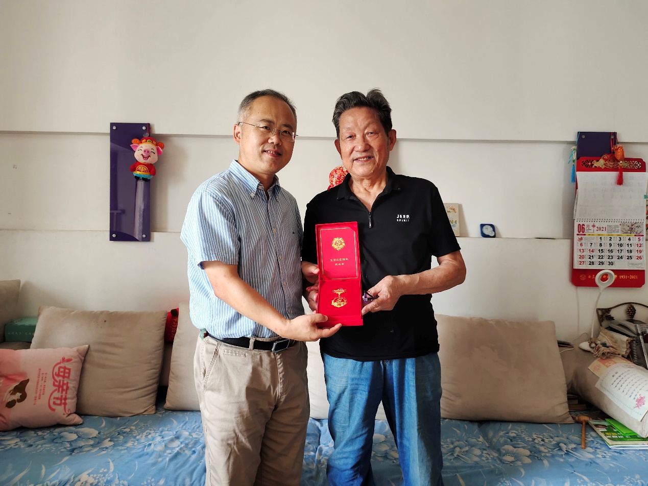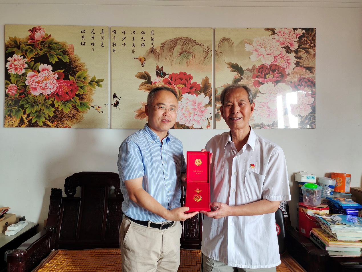 张卫东慰问上官仪老师并送上“光荣在党50年”纪念章