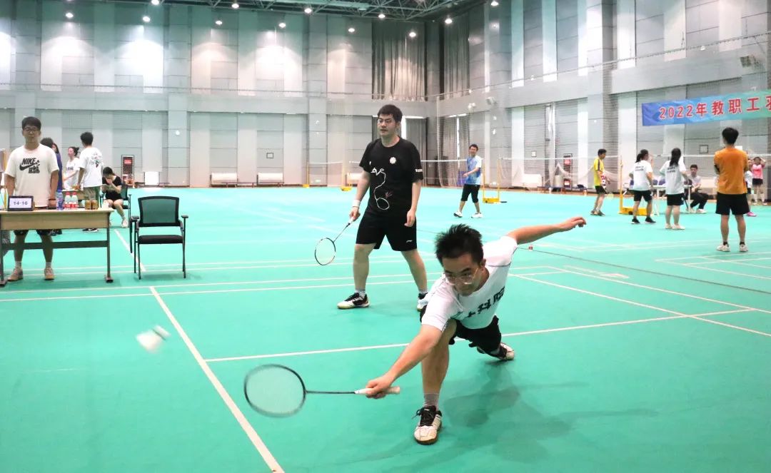 在友谊赛环节,双方各派出最强代表,师生混合组成两组混双队伍,贡献了一场精彩的表演赛。师生并肩战斗,默契配合,一起在赛场上挥洒汗水。比赛高潮迭起,场下掌声不断,比分已不重要。