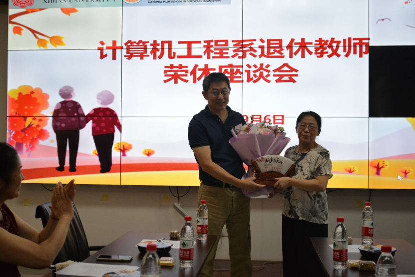 李龙海介绍了裘雪红、刘志镜等两位老师的工作经历,两位老师兢兢业业耕耘在教学科研一线,是引领后辈前行的榜样。裘雪红先后主讲过计算机组织与体系结构、微机原理与系统设计等7门本科生专业课程,其中2门为省级精品课程、省级精品资源共享课程,负责主编的《微型计算机原理及接口技术(第二版)》等教材被评为国家级规划教材、普通高等教育精品教材等。刘志镜曾任计算机学院副院长,获国家科技进步三等奖1项,省部级/军队科技进步奖9项等,是国家教育部教育扶贫与乡村振兴专家组专家,获陕西省高校优秀共产党员、2022年陕西省先进工作者称号,打造的“农掌门”、“山货帮”平台在科技扶贫、乡村振兴等领域成效显著,成为科研工作者“把论文写在大地上”的生动实践。