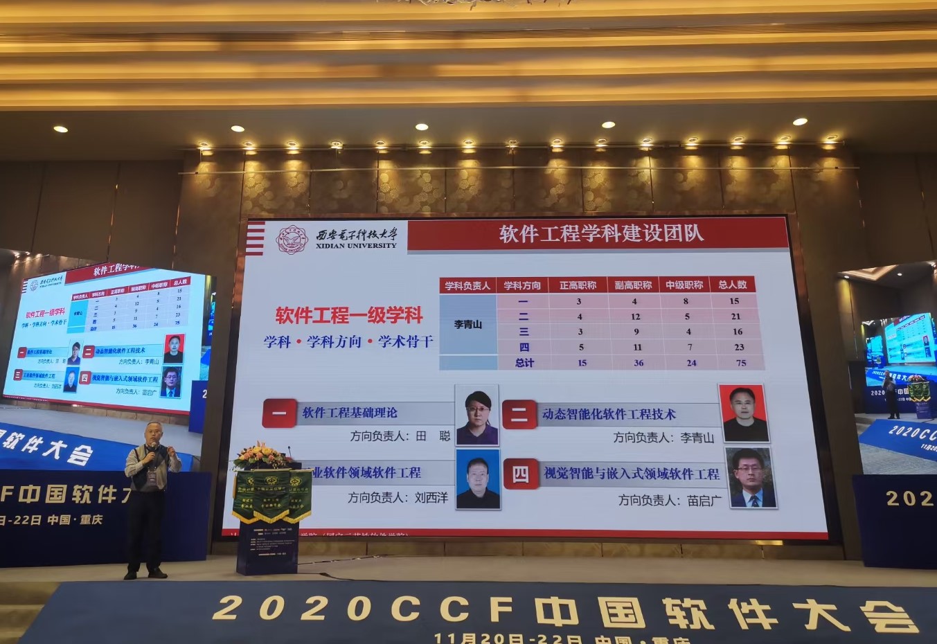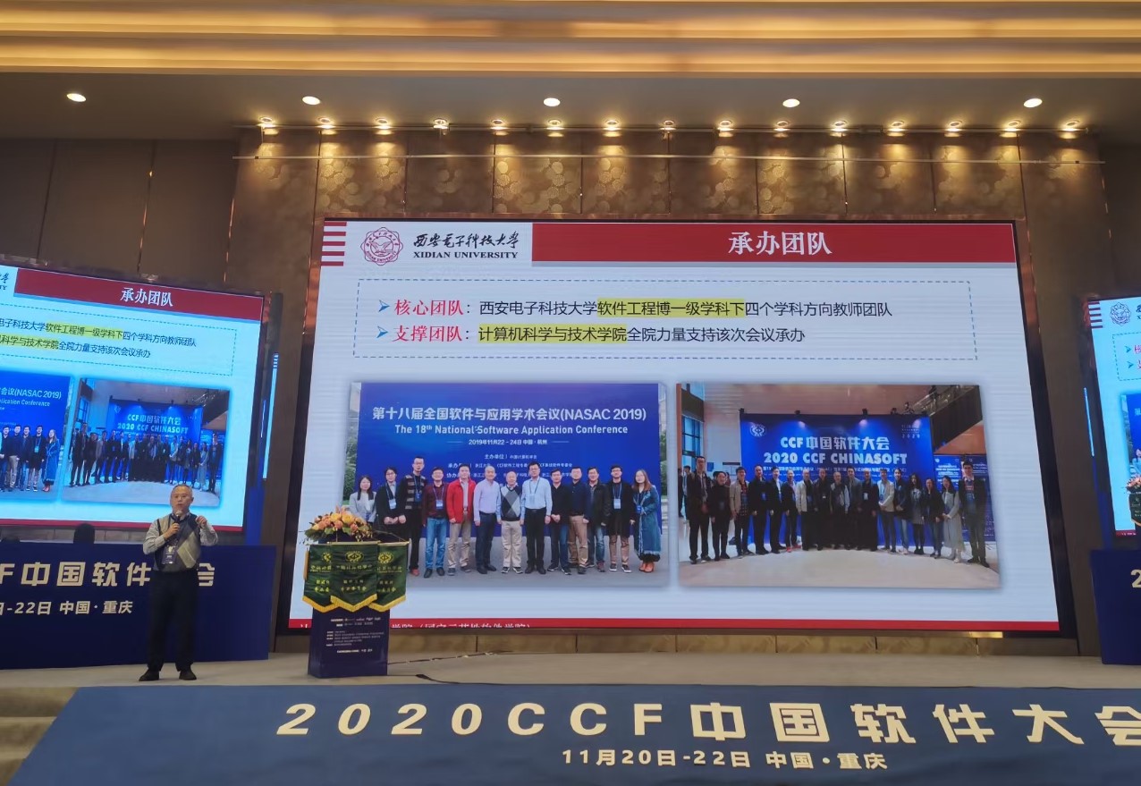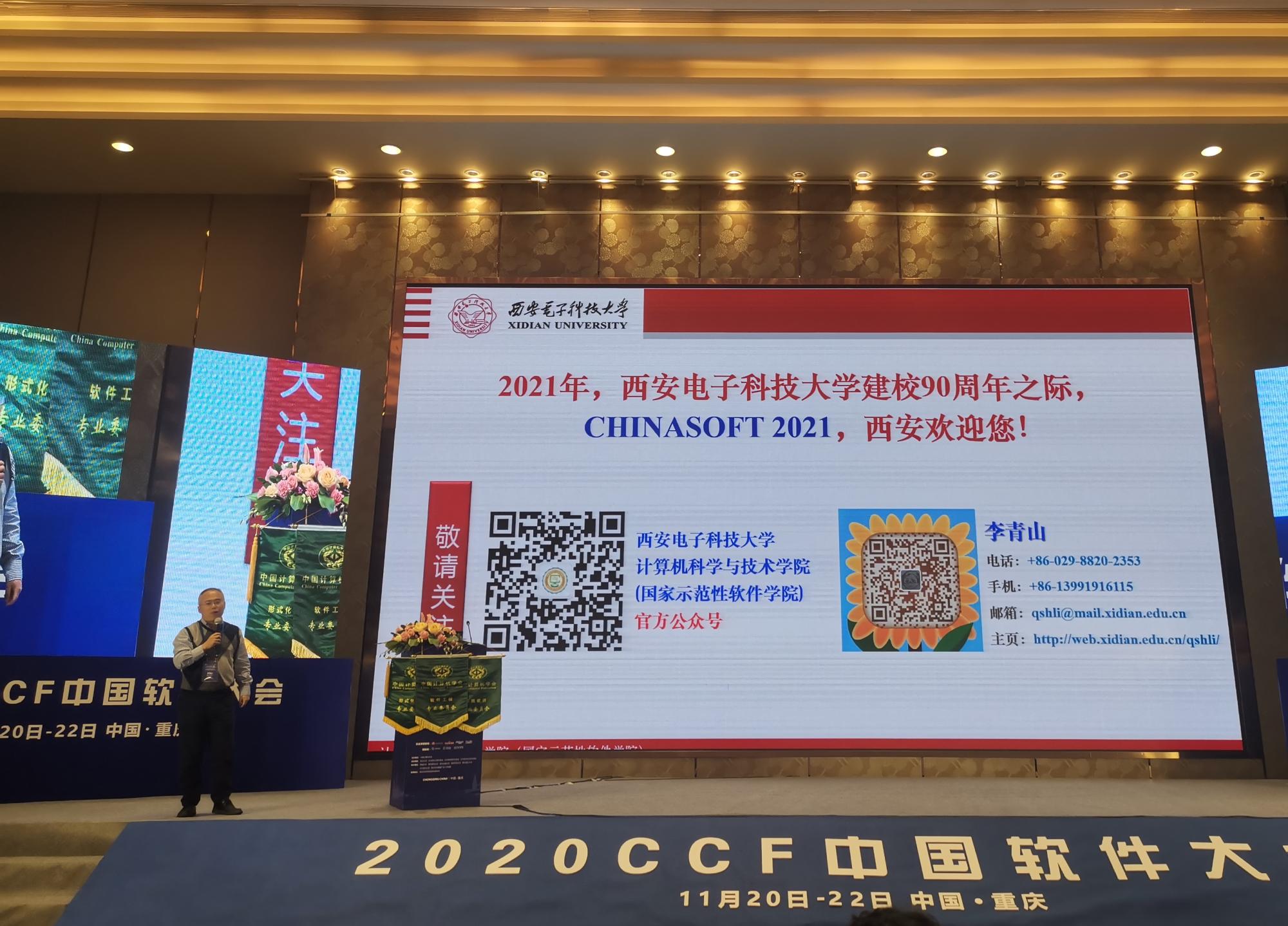 (通讯员 徐悦甡)2020年11月20日至11月22日,CCF中国软件大会(CHINASOFT)在重庆召开,会议由中国计算机学会(CCF)主办,CCF系统软件专业委员会、CCF软件工程专业委员会、CCF形式化方法专业委员会、重庆大学大数据与软件学院承办。yl7703永利集团软件工程学科四个学科方向的骨干教师20余人及部分学生,在学科负责人李青山教授、学科方向负责人田聪教授、刘西洋教授、苗启广教授以及学科秘书长宋胜利教授的带领下参加了会议。学科参会教师和学生有多篇论文被录用并被推荐到《软件学报》等知名期刊,参会教师和学生还在大会举办的教学与学科竞赛中获得佳绩。特别地,我校获批了明年CCF中国软件大会的承办权,李青山参加了下届会议的承办交接仪式。