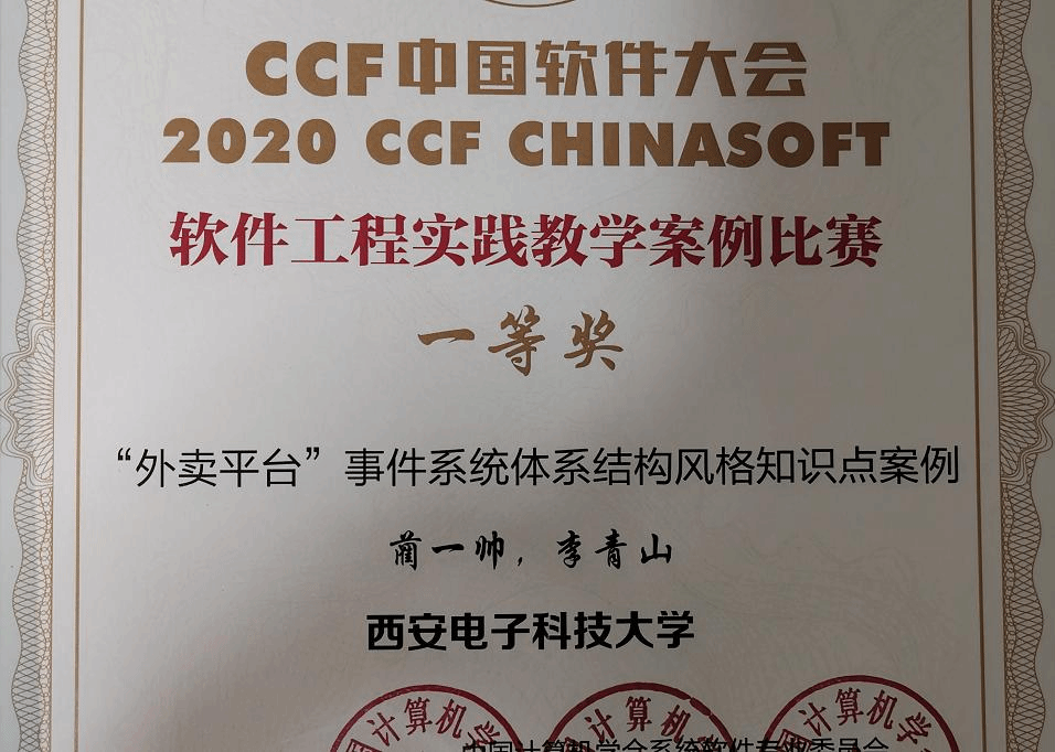 同时,在大会举办的一系列比赛与竞赛中,我校教师与学生也取得了佳绩。蔺一帅博士负责的题为《“外卖平台”事件系统体系结构风格知识点案例》获得大会软件工程实践教学案例比赛一等奖,由李贺老师指导的参赛队伍获得第三届全国高校绿色计算创新大赛一等奖。