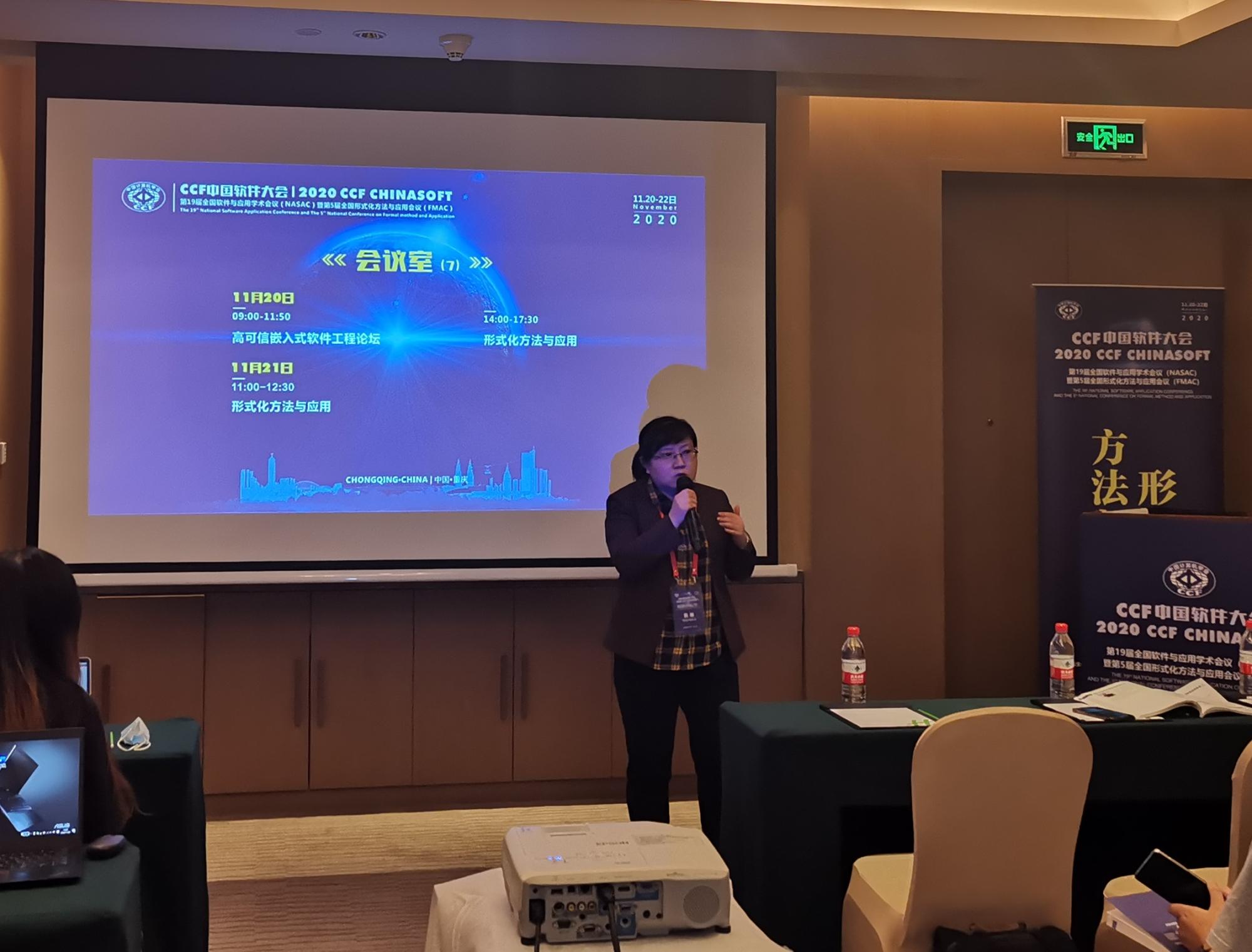 西电软工学科参会教师主持了若干个大会论坛,其中田聪教授主持了“形式化方法与应用论坛”,论坛上来自包括清华大学、西北工业大学、中南大学、yl7703永利集团、首都师范大学等在内的22篇论文的作者代表做了论文报告。于斌博士主持了“顶会顶刊论坛”,论坛包括了国内最近一年发表在软件工程和形式化等领域的顶级国际会议与期刊上的代表性论文12篇,发表出处包括CAV 2020、LICS 2020、ICSE 2020、ASE2020、IJCAI 2020以及TOSEM等。