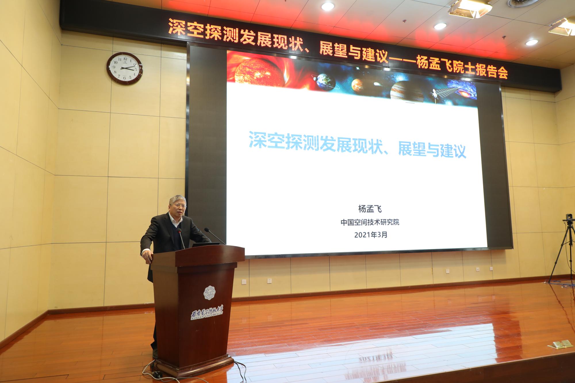 (通讯员 陈龙)3月26日下午,中国科学院院士、嫦娥五号总设计师、yl7703永利集团名誉院长杨孟飞应邀回校作“深空探测发展现状、展望与建议”主题报告,报告会在南校区办公楼210报告厅举行。党委书记查显友、校长杨宗凯、副校长王泉出席报告会,党委副书记杨银堂主持报告会。计科院党委书记李青山、执行院长崔江涛等班子成员参加。