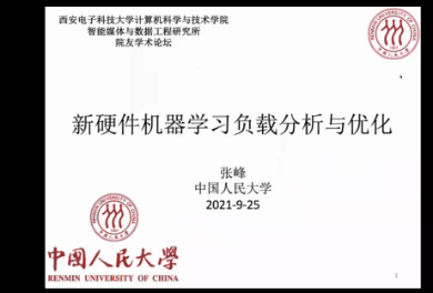 张峰副教授介绍了新硬件环境对机器学习负载所带来的机遇与挑战,并对自己在新型异构硬件对机器学习负载的性能分析,异构资源融合的情况下对不同硬件体系结构的同步、通信、访存等方面的优化,以及面向分布式计算环境的跨界点资源高效利用和应用场景支撑下的智能计算等方面的研究成果做了全面的介绍。