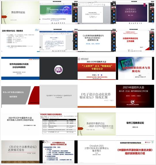 10月10日召开了2021 CCF中国软件大会专题工作会,第一阶段由董威教授主持。CCF系统软件、软件工程、形式化方法专委会主任、副主任、秘书长、副秘书长以及部分论坛主席金芝教授、李宣东教授、王戟教授、彭鑫教授、蒲戈光教授、李戈副教授、卜磊教授、董威教授、吴志林研究员、胡春明教授、刘志明教授、刘烃教授、江贺教授、崔西宁研究员,以及大会承办方团队共同出席了会议。作为大会程序委员会与组织委员会联合主席,李青山首先就2021 CCF中国软件大会的筹备工作进展进行了说明,包括会议筹备历程、举办方案制定、会议内容准备、会议组织设计、赞助协办推进情况等。今年的中国软件大会目前计划设有35个论坛,具体分为4类,即论文专刊类论坛、学术类论坛、工业类论坛与教育类论坛。每个论坛的论坛主席通过线上线下相结合的方式依次汇报了论坛的准备情况。论文专刊类论坛侧重于论文投稿与收录论文数量等情况,学术类论坛与教育类论坛侧重于嘉宾设置与嘉宾邀请进展,工业类论坛侧重于工业界嘉宾确定与邀请情况。